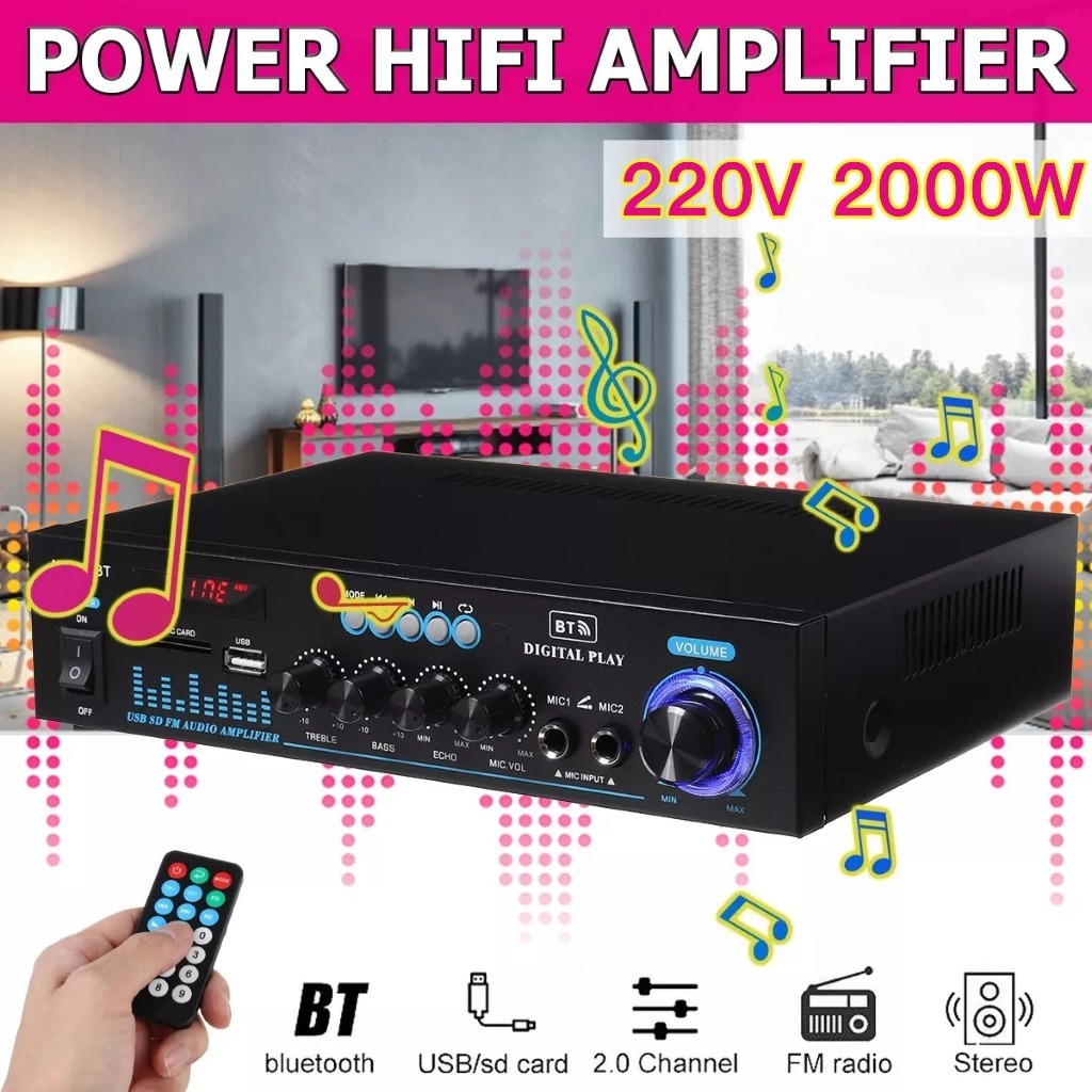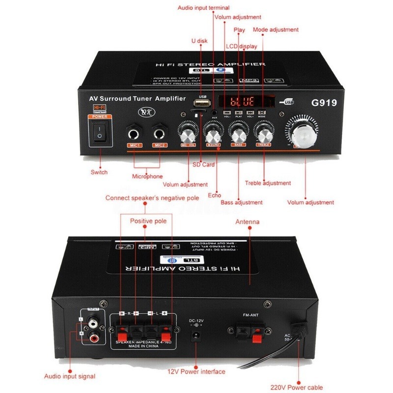 HIFI Audio Player 12v mini Car amplifier with bluetooth 5.0 Amplifier for speaker 2.0 Channel