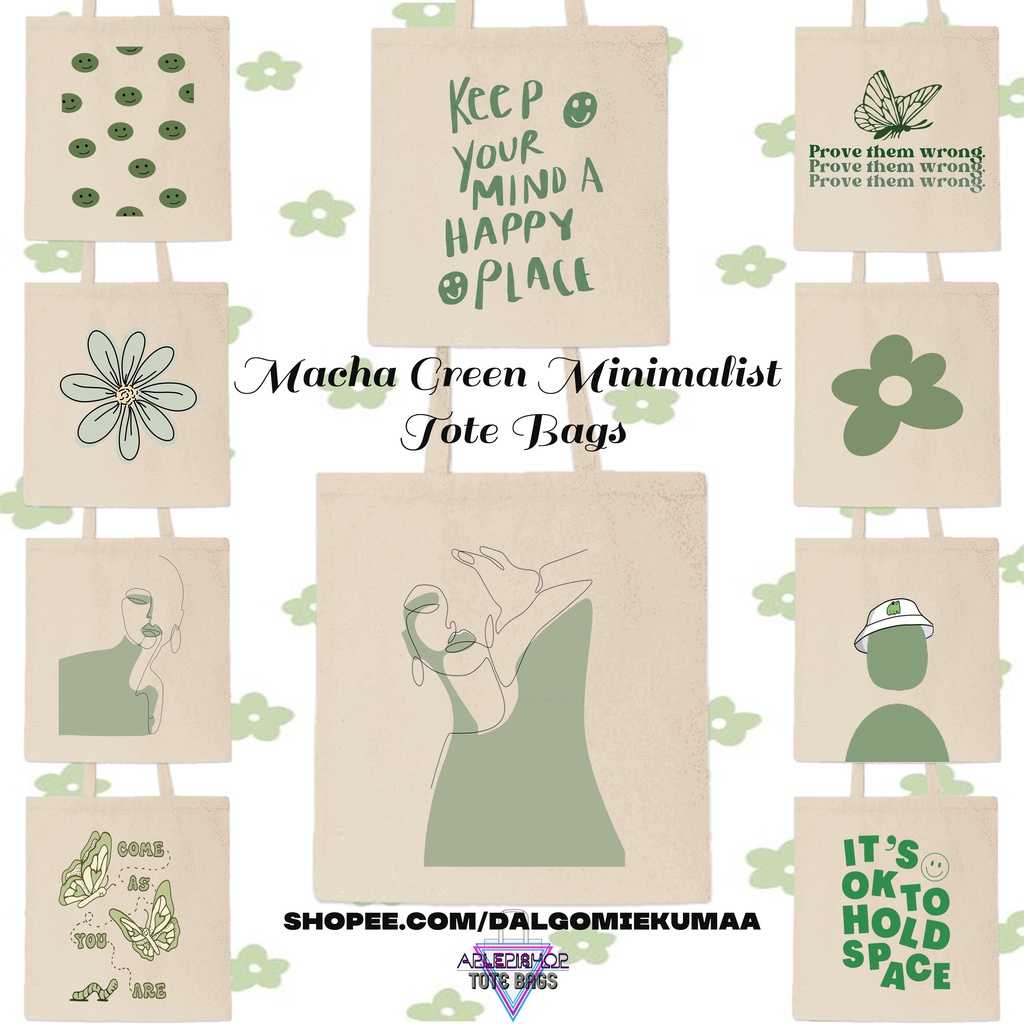 HIGH QUALITY AESTHETIC MINIMALIST MATCHA GREEN DESIGNS KATSA TOTE BAGS