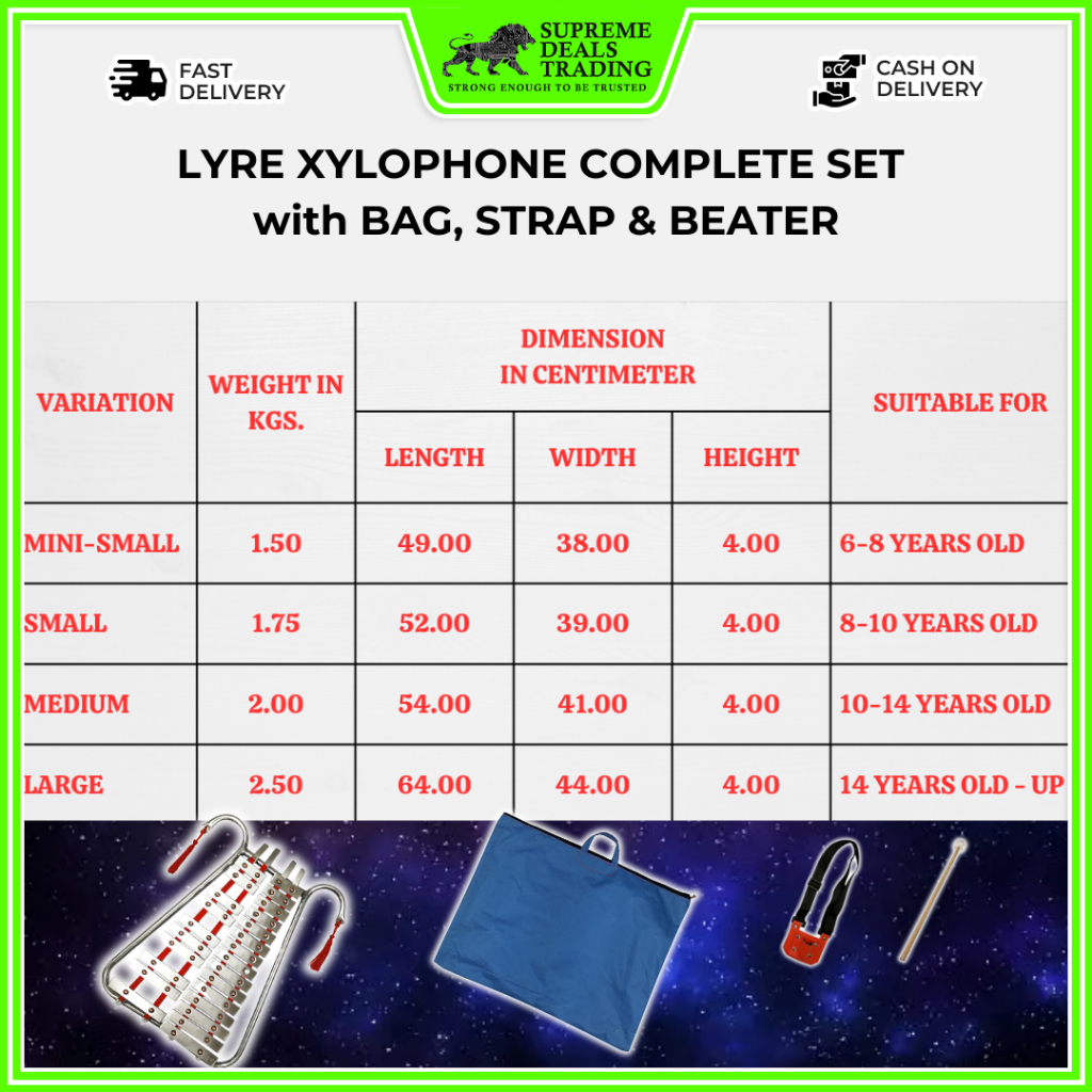 HIGH QUALITY LYRE XYLOPHONE COMPLETE SET WITH BAG, STRAP AND BEATER MEDIUM