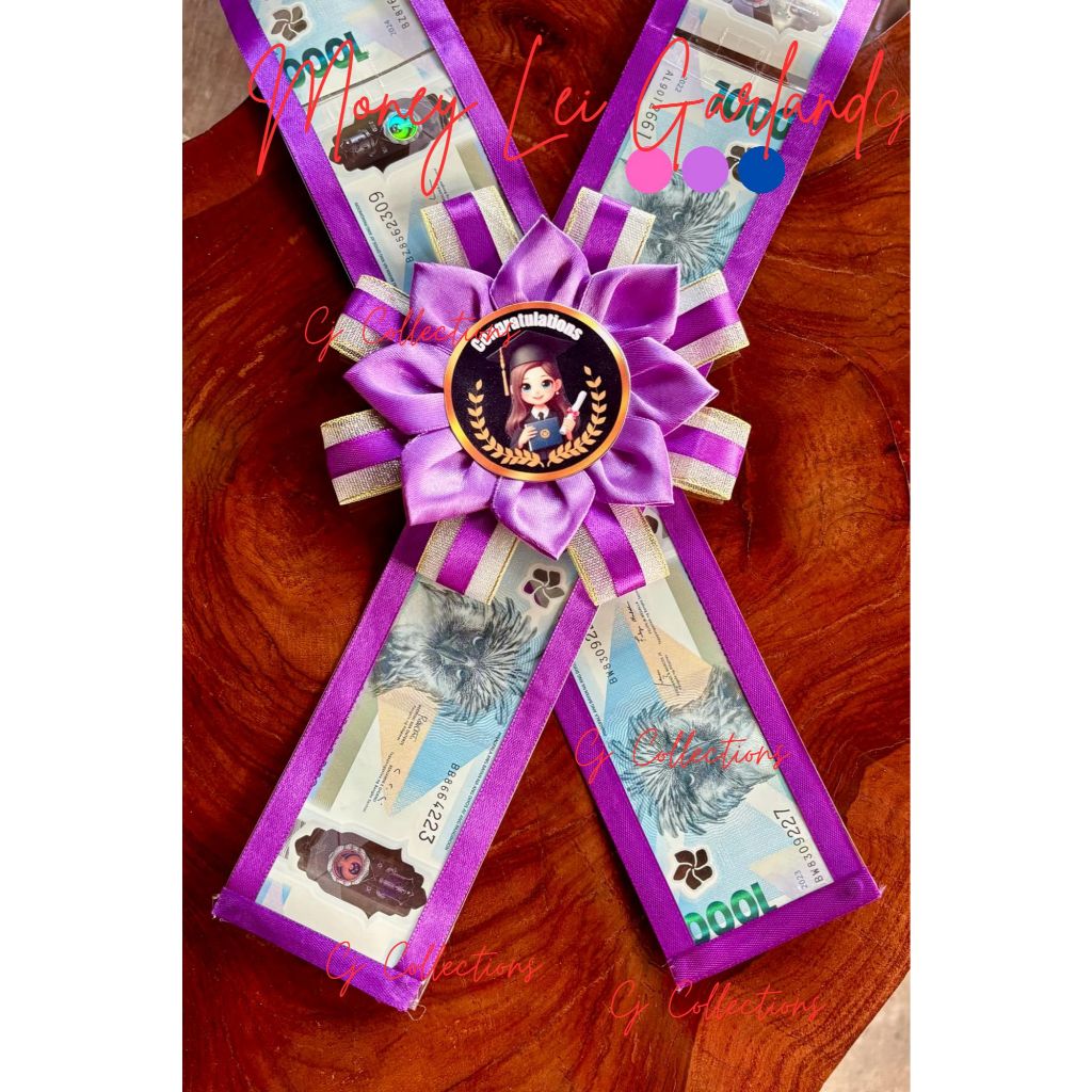 HIGH QUALITY MONEY LEI GARLAND made of Soft Fuzzy Wire OR SATIN for Graduation or Any Occasion