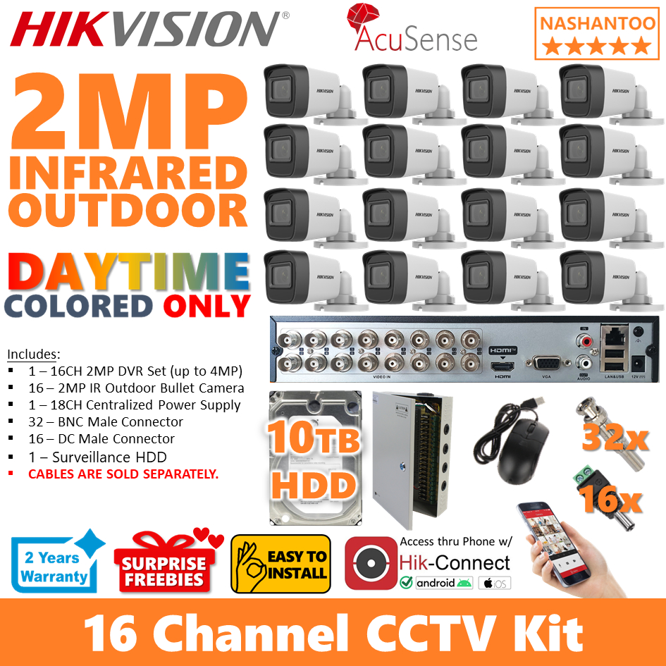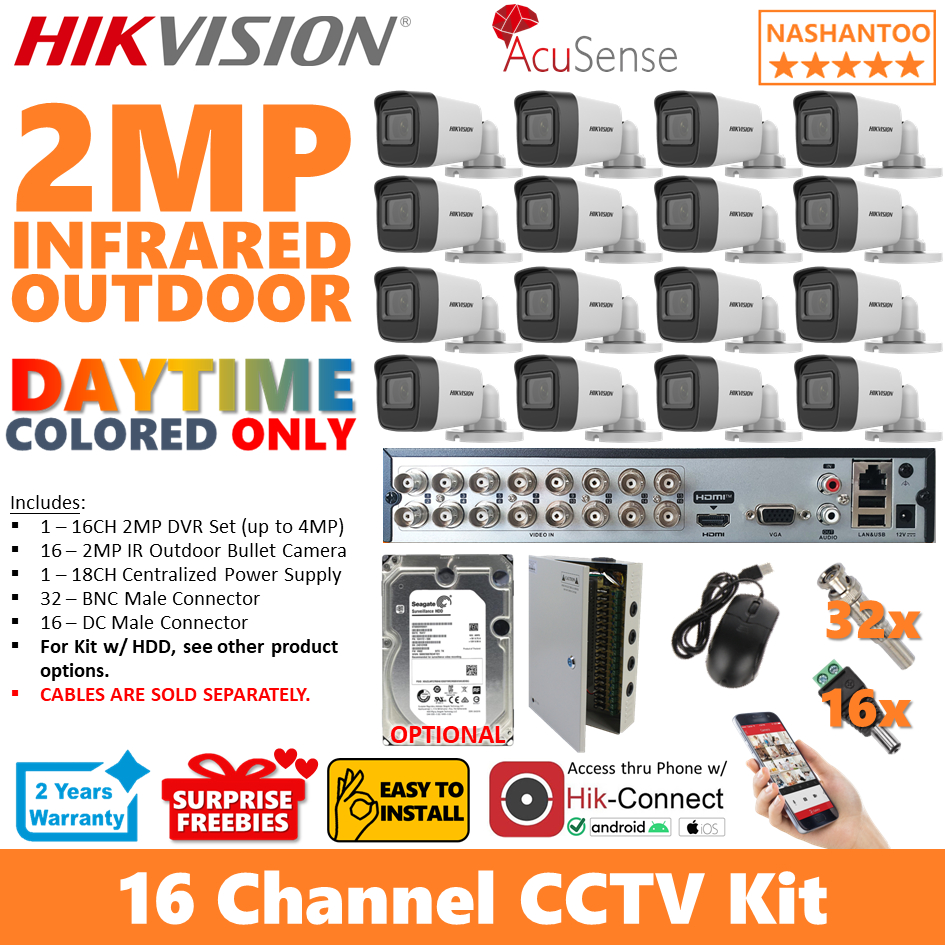 HIKVISION 16Channel 2MP IR 16Cameras (16 Bullet) Turbo HD DIY CCTV Package Kit 16/16IRV2 CPS(16B)