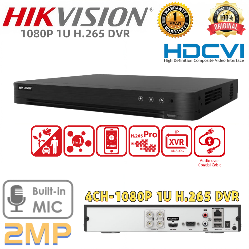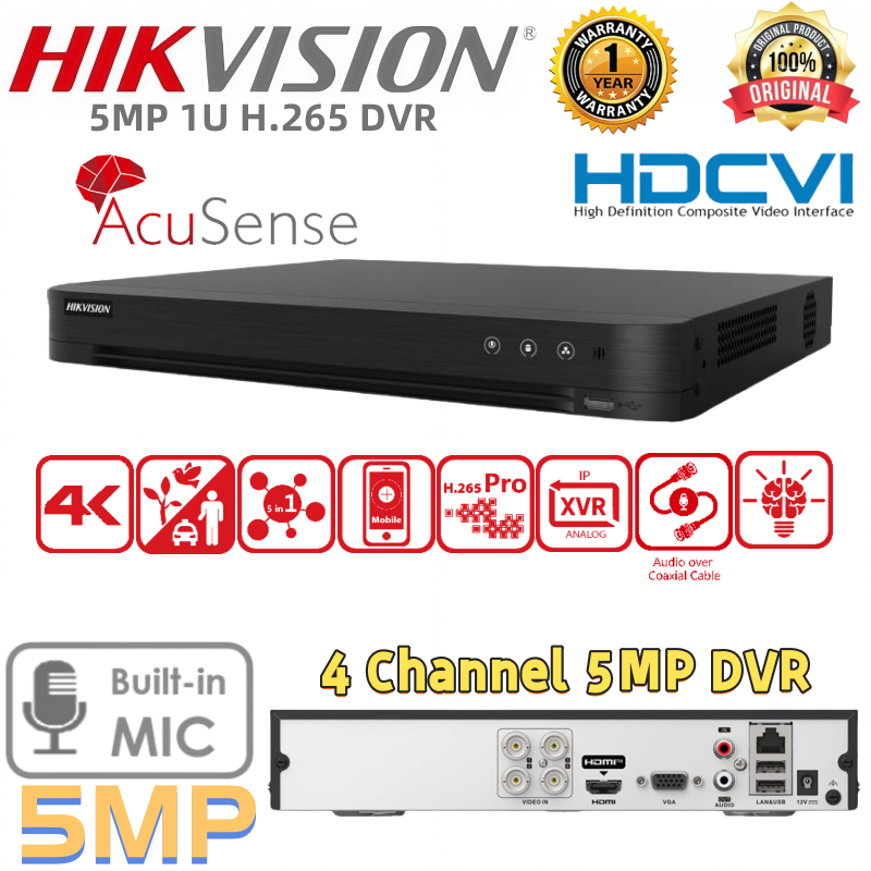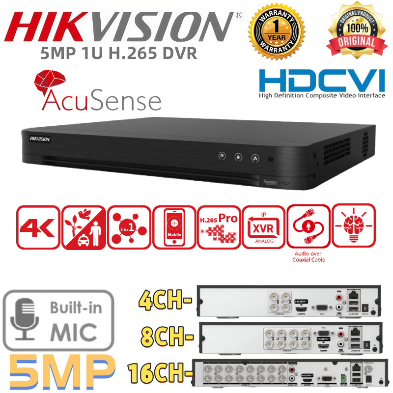 HIKVISION 5MP H.265 Acusense DVR 5in1 Video Input Audio over coaxial cable Motion Detection CCTV DVR
