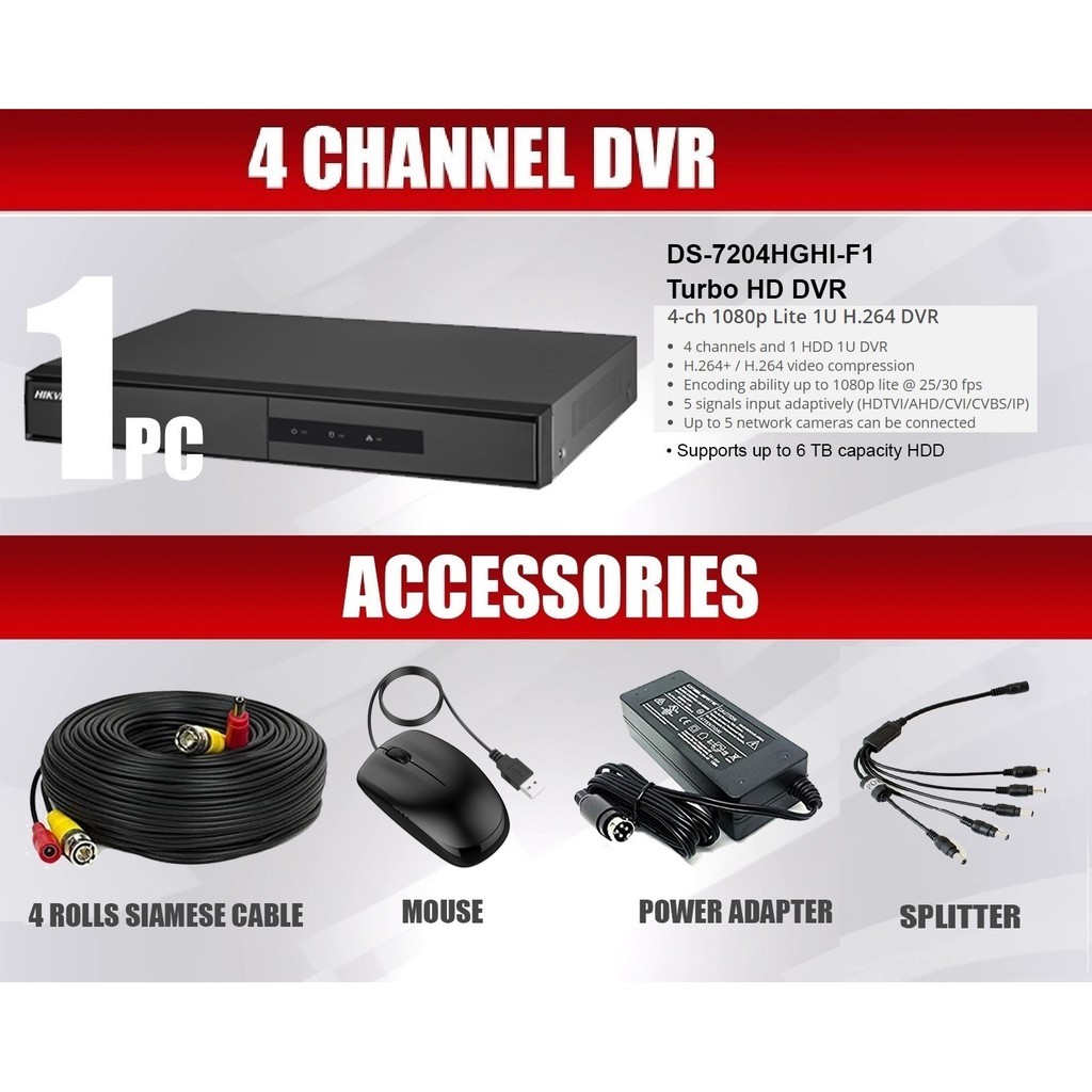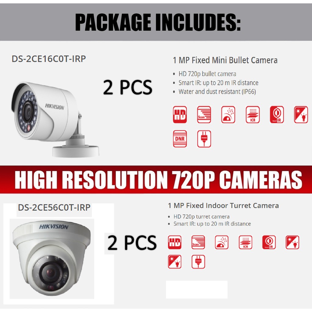 HIKVISION CCTV PACKAGE 1MP 4 CAMERAS TURBO HD CCTV PACKAGE 4 CHANNEL
