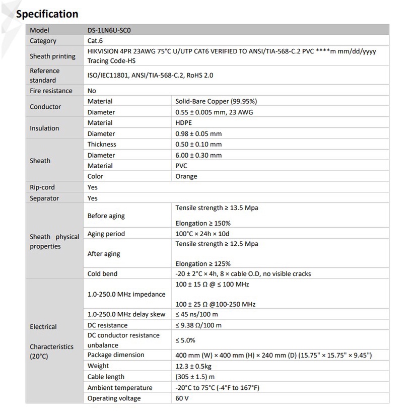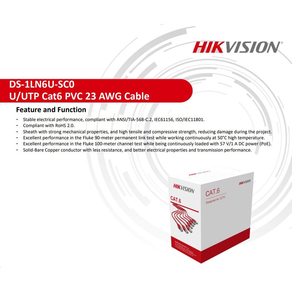 HIKVISION DS-1LN6U-SC0 Cat6 Indoor UTP Cable