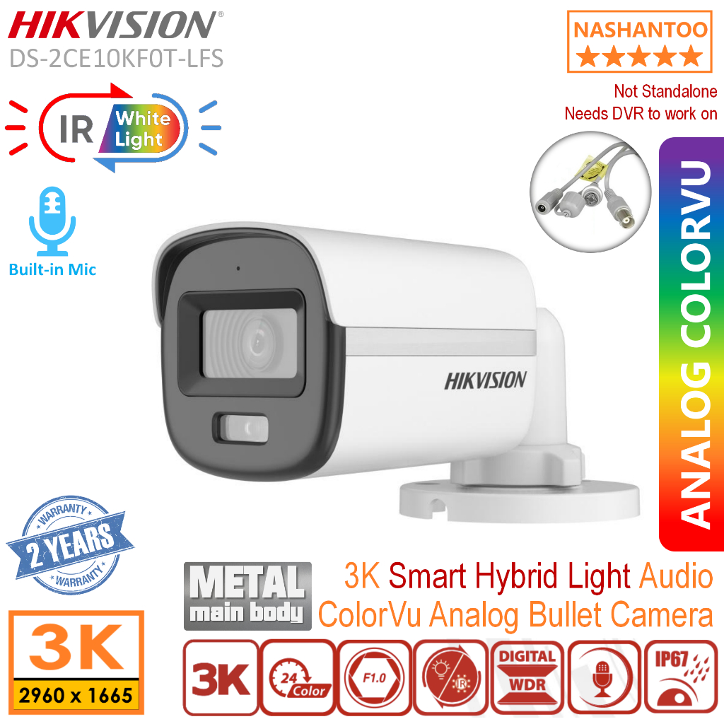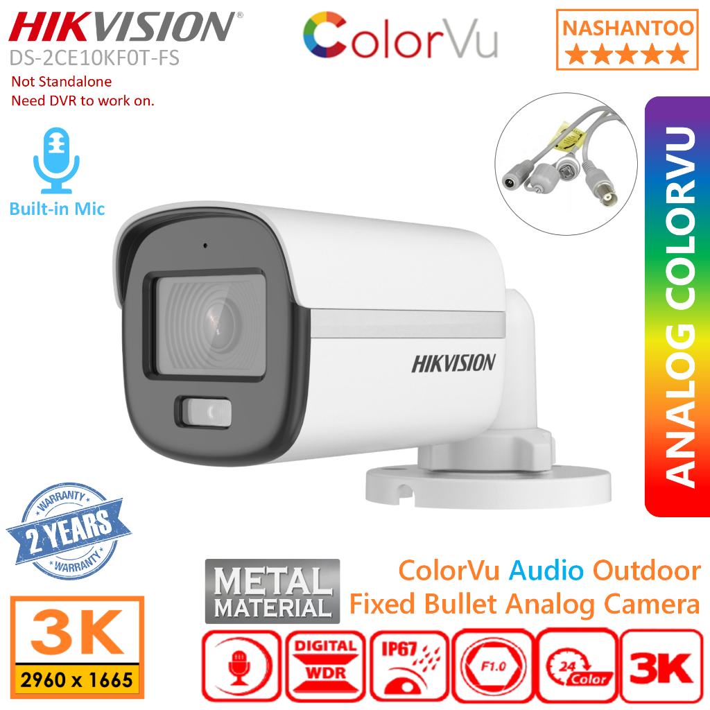 HIKVISION DS-2CE10KF0T-FS/DS-2CE10KF0T-LFS 3K/5MP ColorVu Audio Analog Bullet Camera