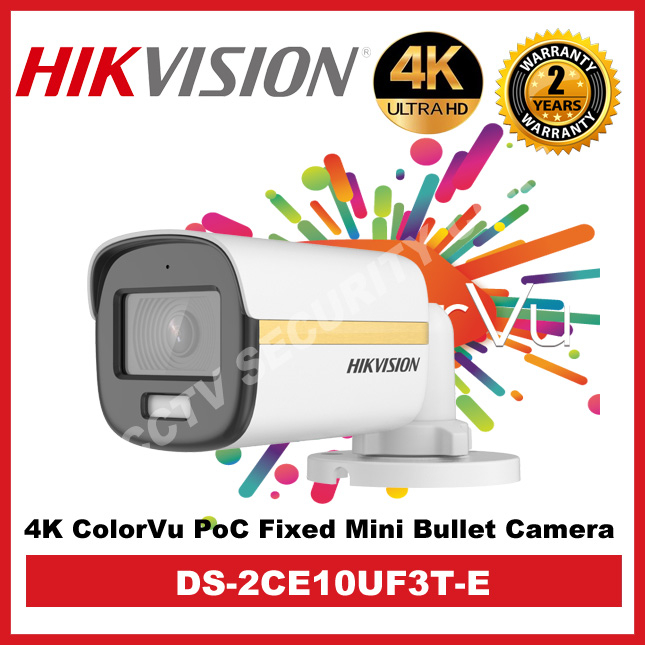 HIKVISION DS-2CE10UF3T-E 4K 8MP ColorVu PoC Fixed Mini Bullet Analog Camera