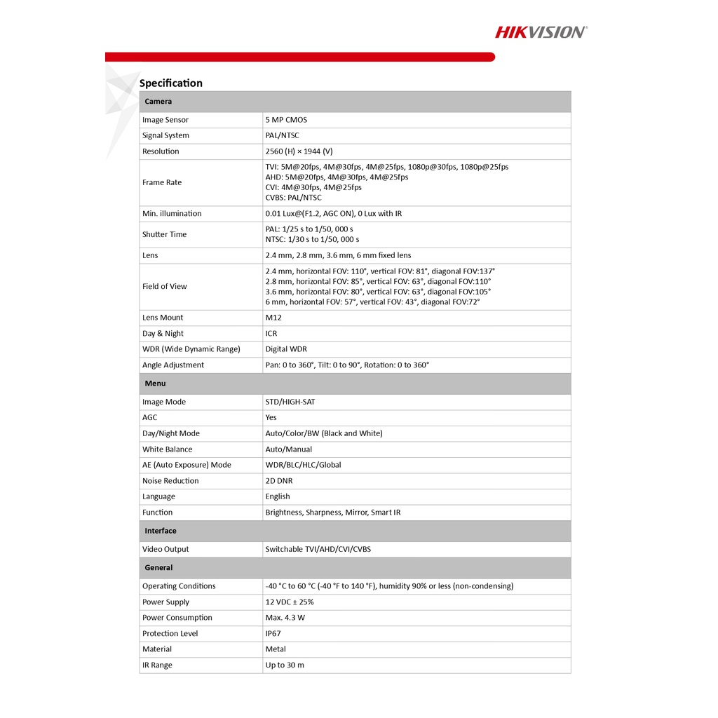 HIKVISION DS-2CE16H0T-ITF 5MP 4 in 1 Turbo HD Analog IR Weatherproof Outdoor Bullet CCTV Camera