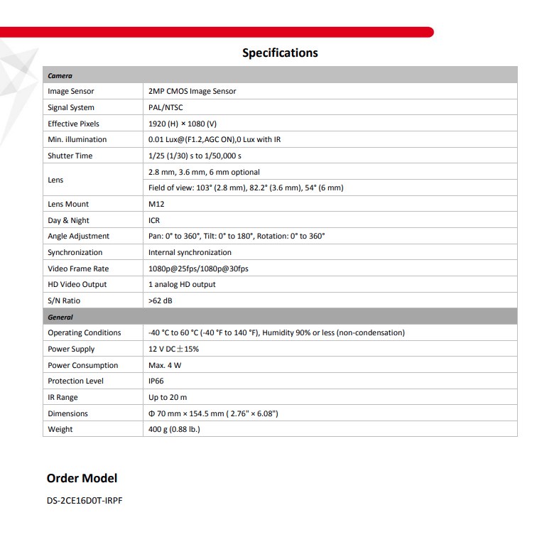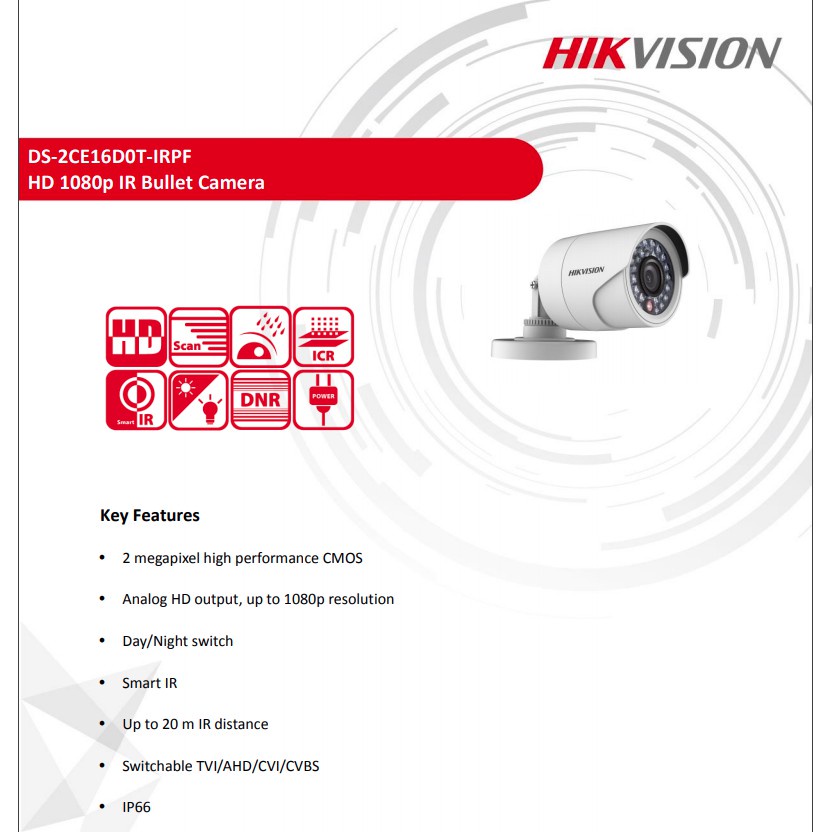 HIKVISION TURBO HD 2MP/1080P Bullet Camera DS-2CE16D0T-IRPF