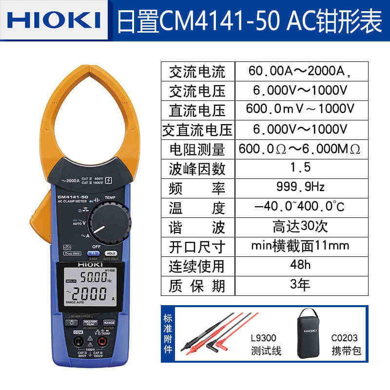 HIOKI Cm4141-50 AC Digital Clamp Meter True RMS Multimeter Ammeter 2000A