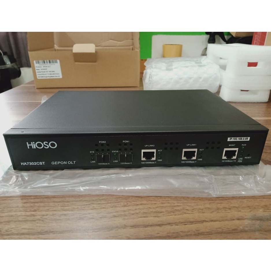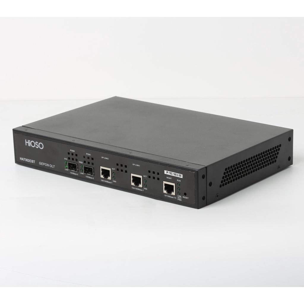 HIOSO HA7302CST 2PON OLT, 2 1000M RJ45 UPLINK PORTS, AC100-240V | Includes 4x EPON OLT SFP PX20+++