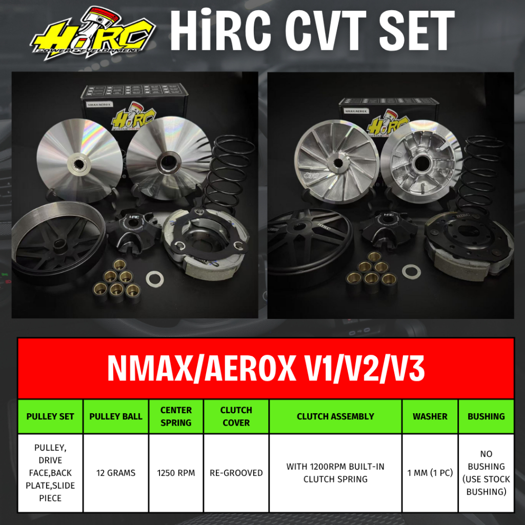 HIRC CVT SET for NMAX/AEROX V1/V2/V3 (13.5 Degree) Pulley,Clutch Assy/Bell,Pulley Ball,Center Spring