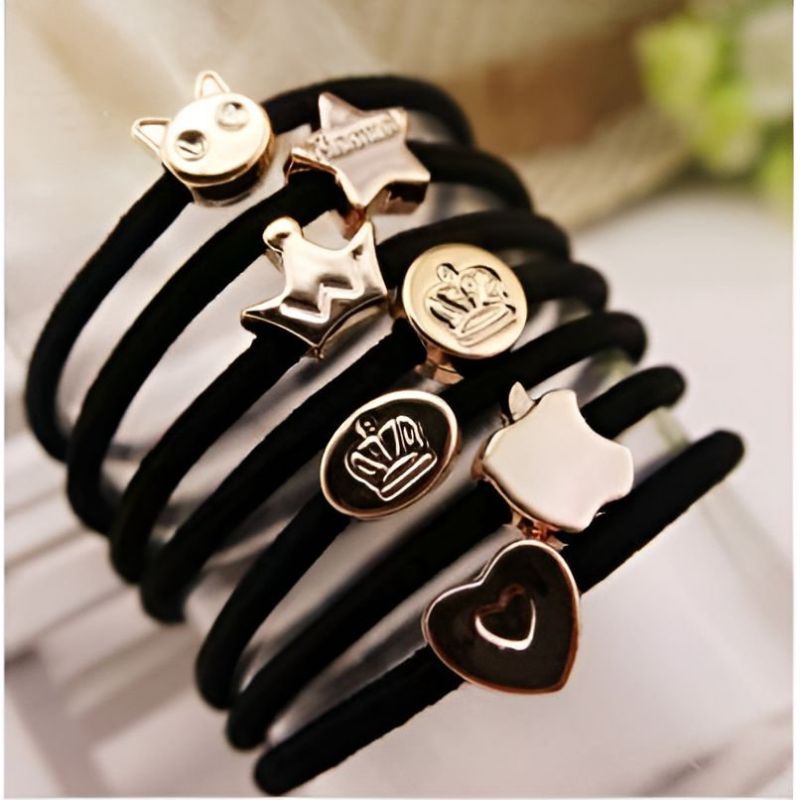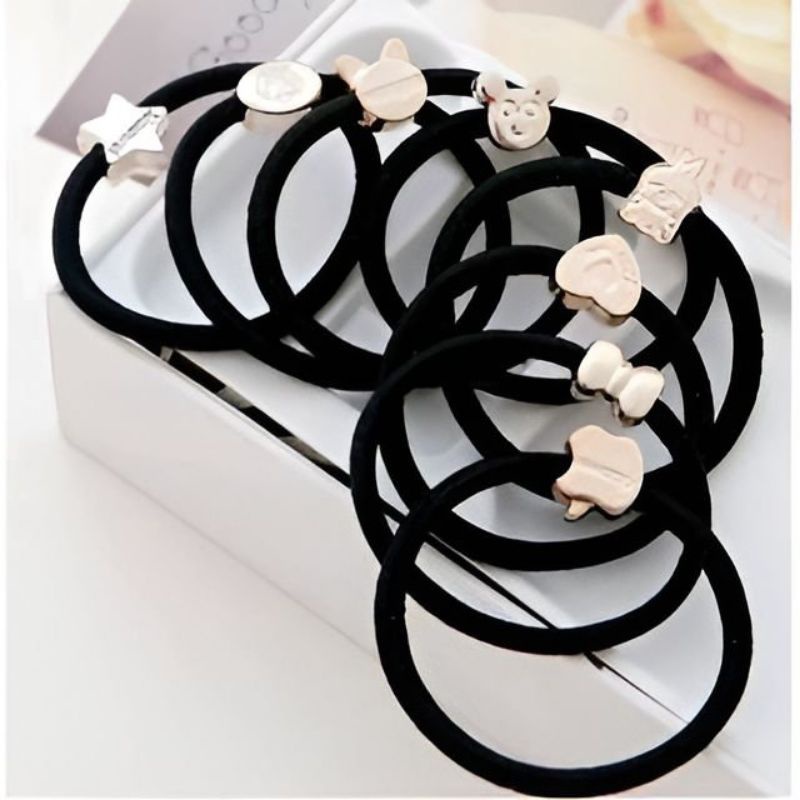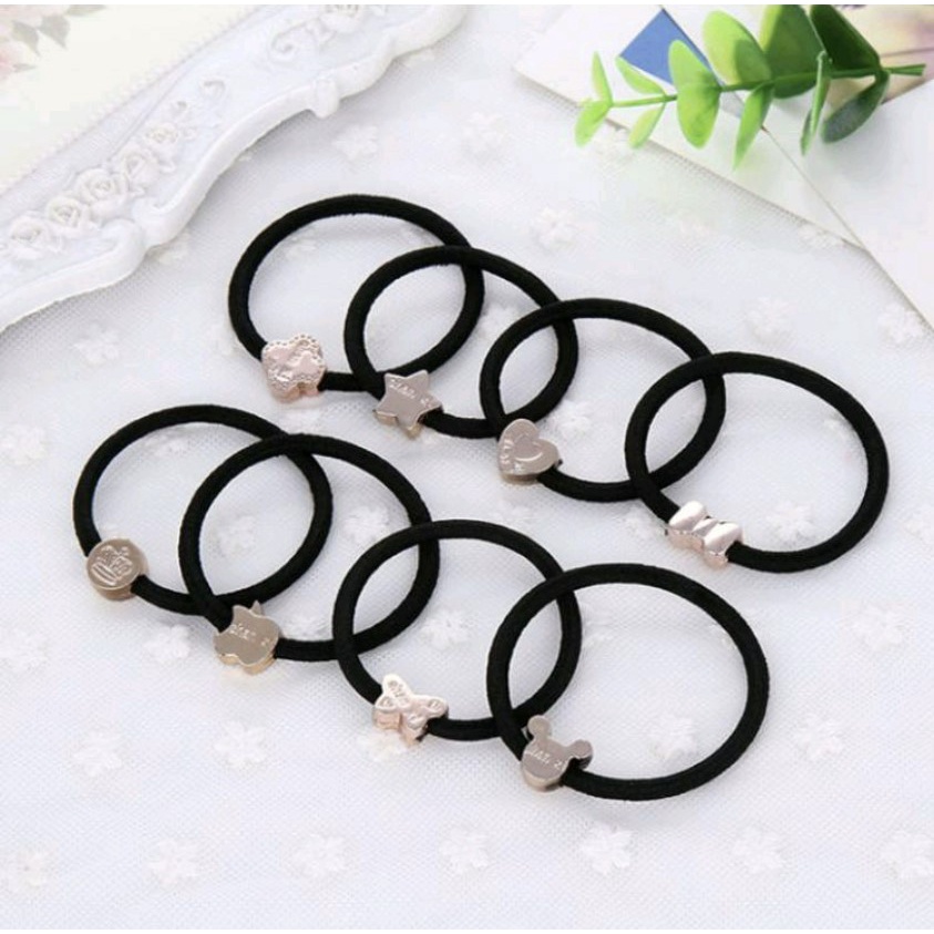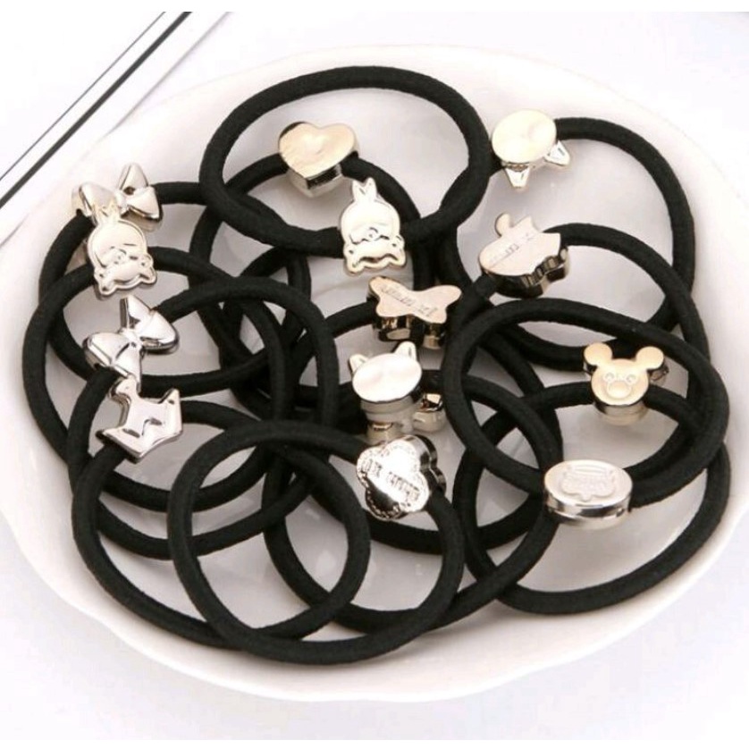HITAM (2 Pcs) Korean Hair Tie Character Hair Band Korean Ponytail Black