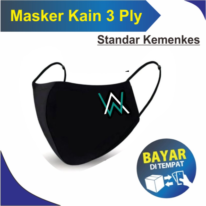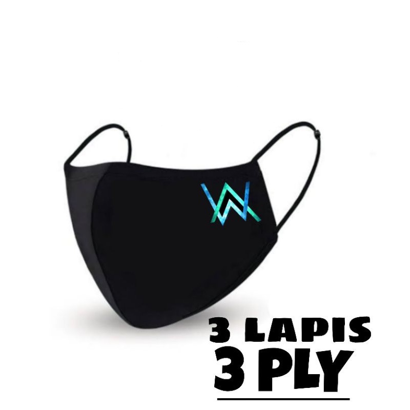 3-Ply Cloth Mask ALAN WALKER Mask - 3-Ply Black Mask / 3-layer earloop cloth mask 3-ply/ Headloop/ Washable Men's Mask