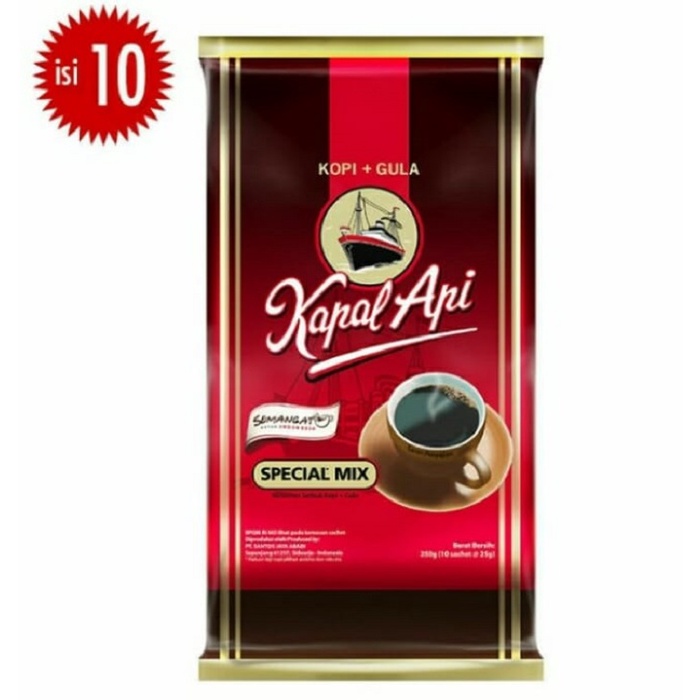 HITAM Kapal Api Coffee Special mix 10 Sachets 25 Grams - Black Coffee Special mix Sugar