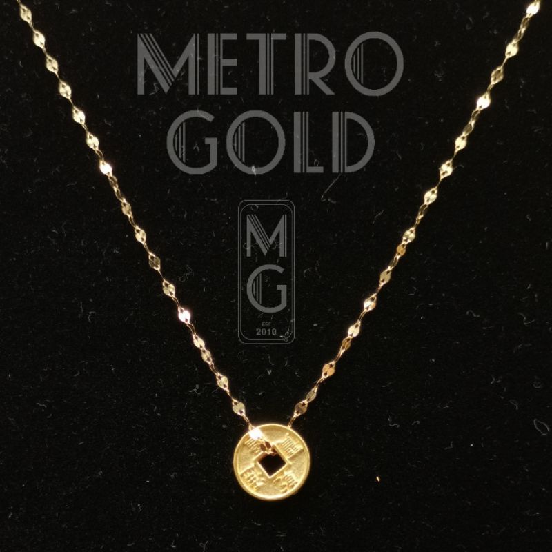 HK 24K Gold Money Coin Pendant with Saudi 18K Gold Dancing Chain Necklace