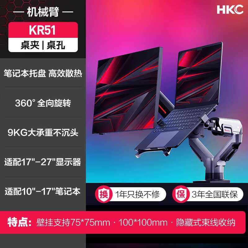 HKC Monitor Stand Computer Secondary Laptop Dual Screen Mechanical Arm Lifting Base White KR20
