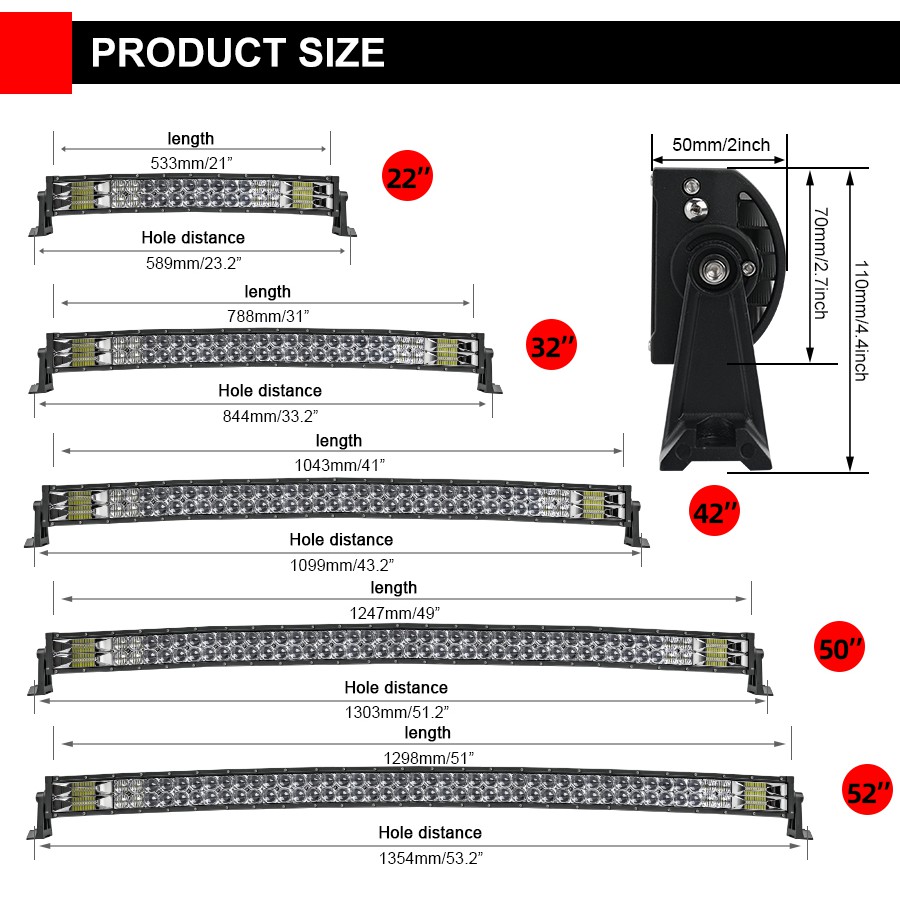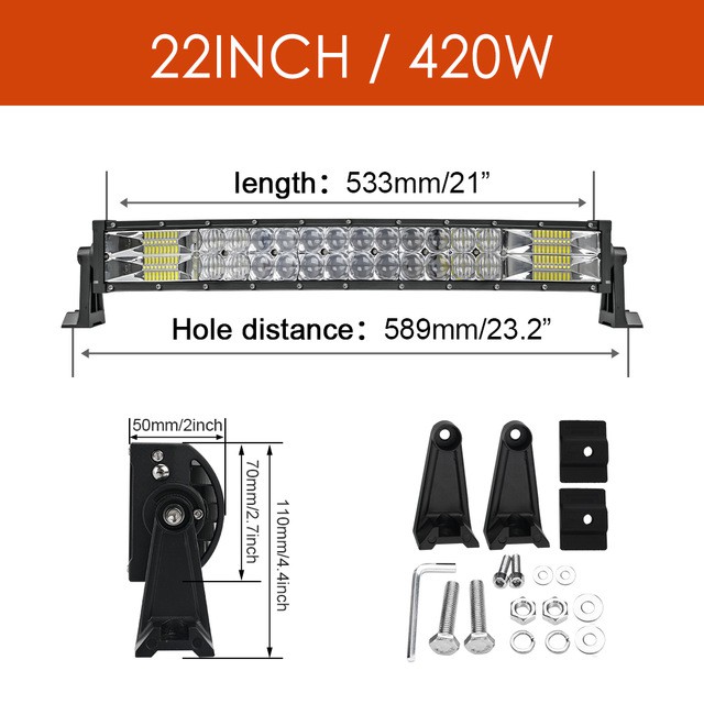 HL Curved LED Bar 2 Rows 22 32 42 52 inch 12V 24V Offroad Led Light Bar Floodlight Spot Combo Beam IP67 Offroad Driving Light for Truck ATV SUV Boat