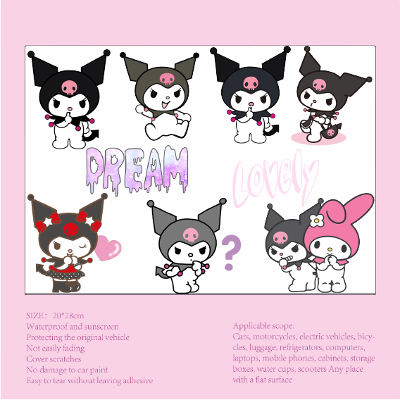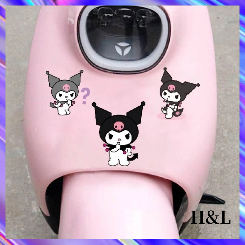 HL Cute Stickers Motorcycle Decoration Kuromi Cartoon Stickers Beauty Decoration Electric Car Kuromi Helmet Stickers Anime Stickers Car Modification Stickers Waterproof