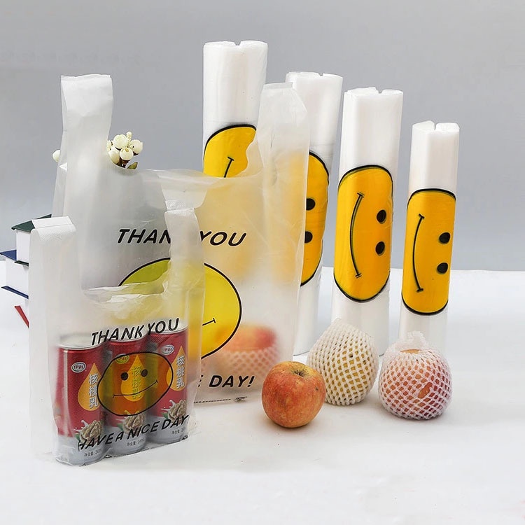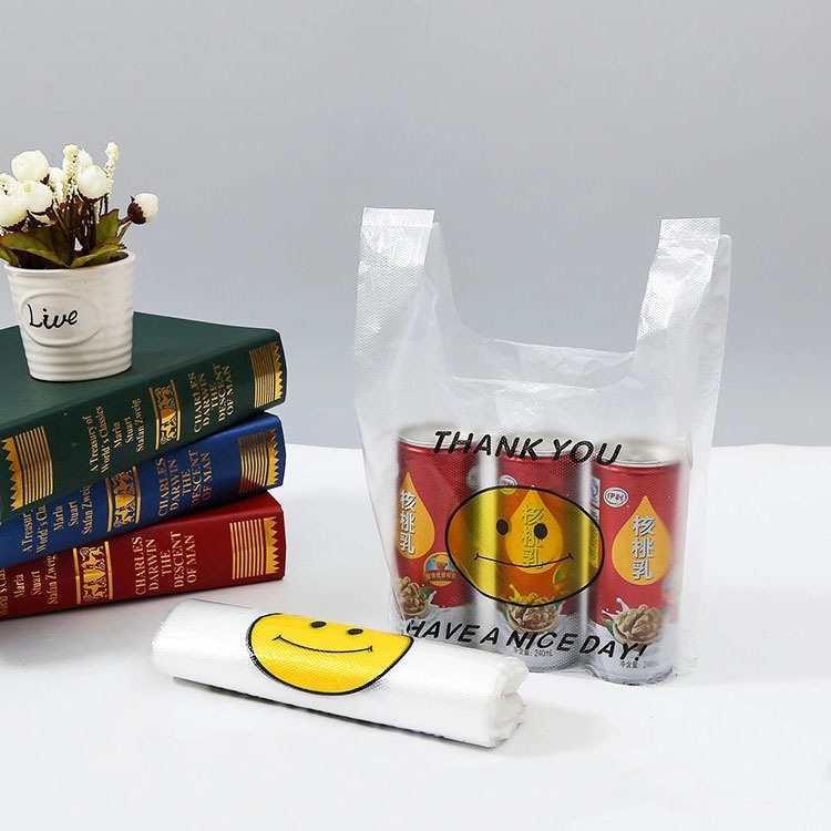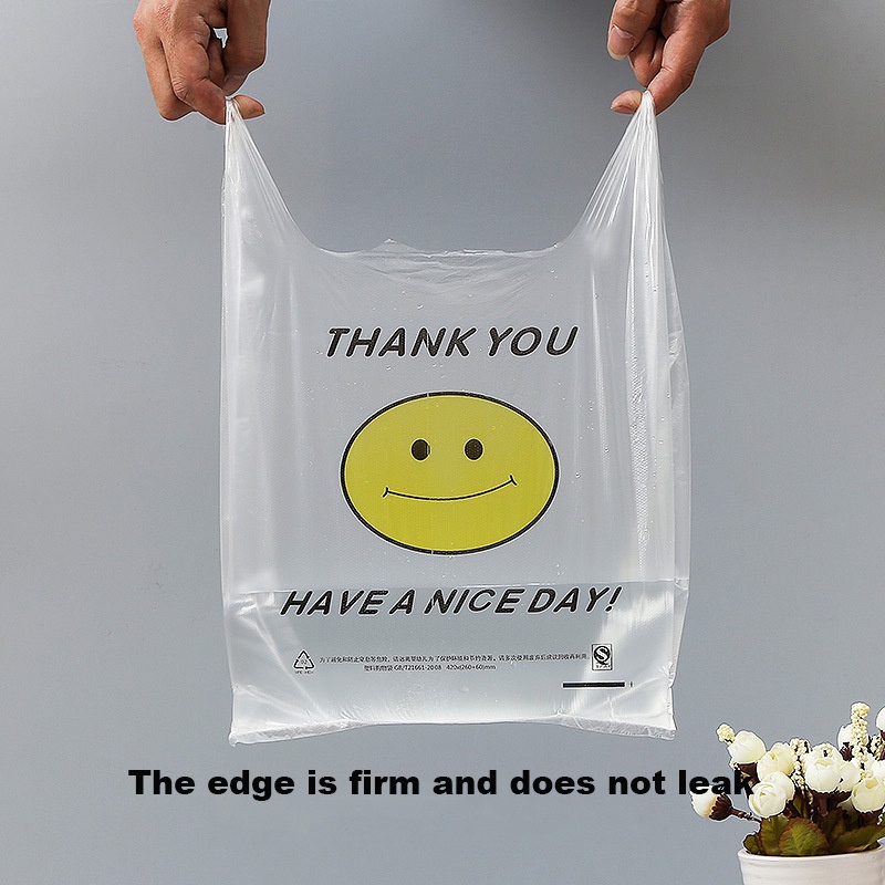 HL market 50Pcs/100Pcs Thank You Printed Plastic Bag Smile Face Plastic Bag Transparent Clear