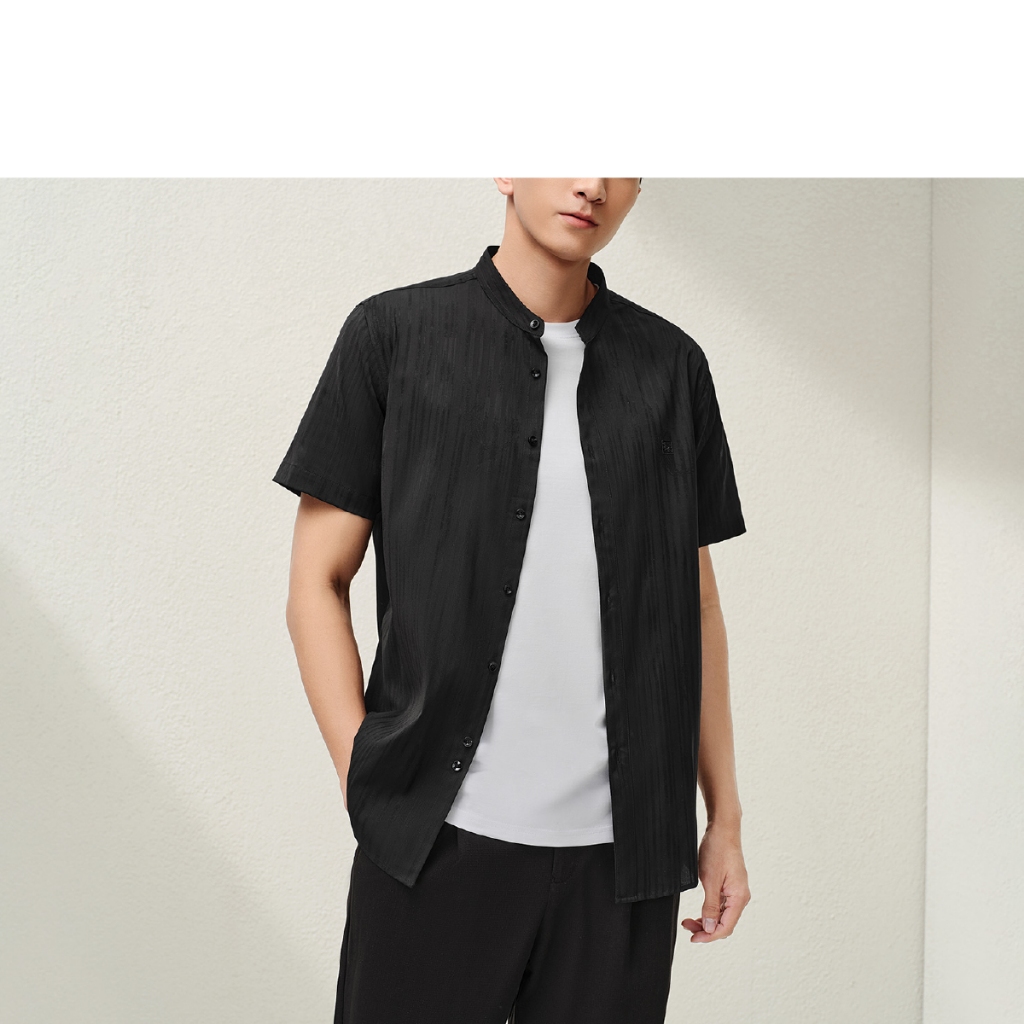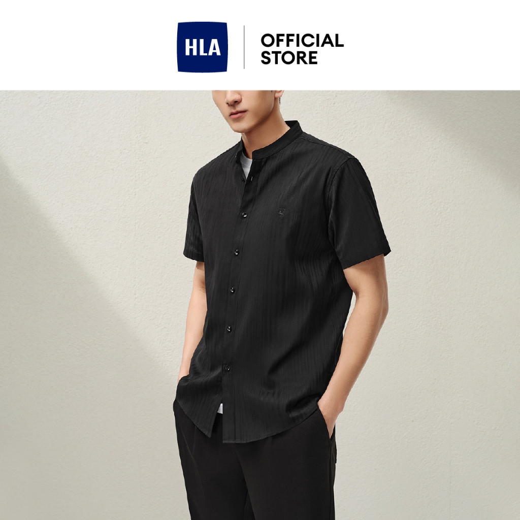 HLA Moisture-Wicking & Quick-Drying Short-Sleeve Shirt with Mandarin Collar Jacquard Business Men