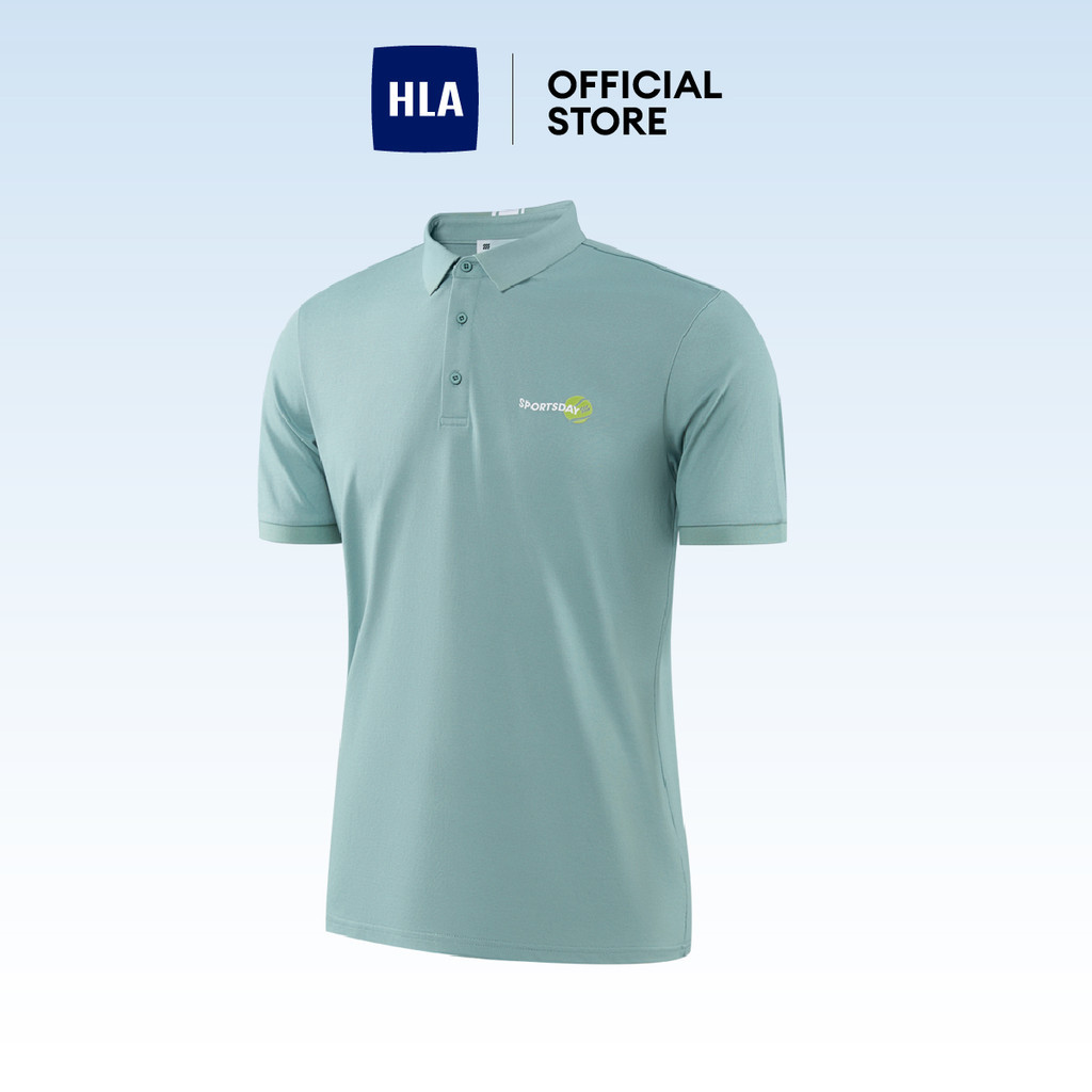 HLA Sportsday Series Solid Colour Trendy Sport Short Sleeve Polo Shirt Men(Blue Green)-HNTPW2Y077AV5