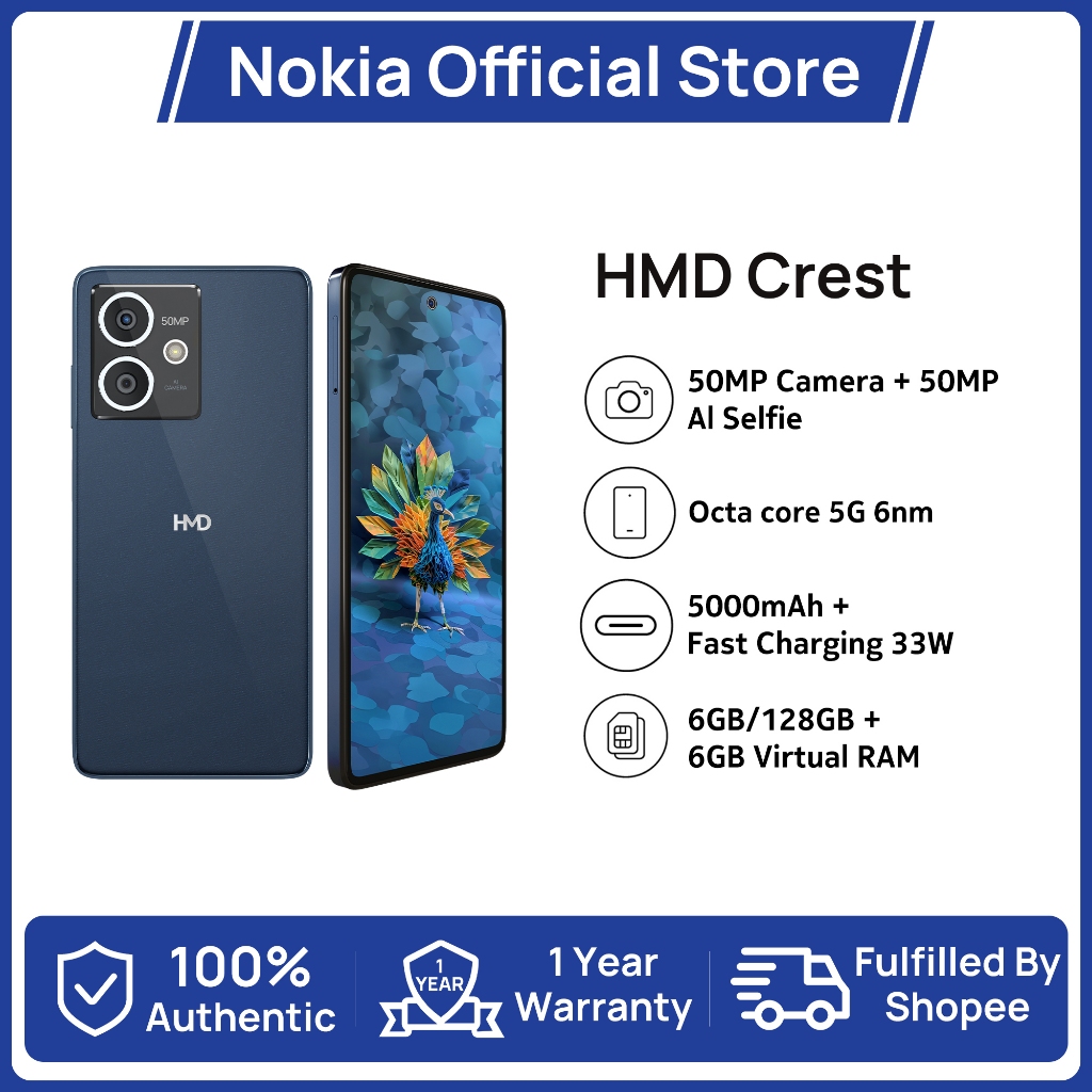 HMD Crest 5G 50MP Selfie 6.67‘’ OLED Screen 33W Fast Charging & HMD Smartphone Pulse Pro Android 15 50MP AI Selfie+50MP AI Dual Cam Both 16GB+256GB 1 Year Swap Servie for Warranty