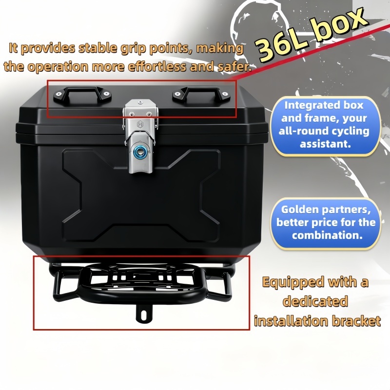 HNJ top box motorcycle with bracket Compartment 36/45/58 Liters Hard plastic Top Box