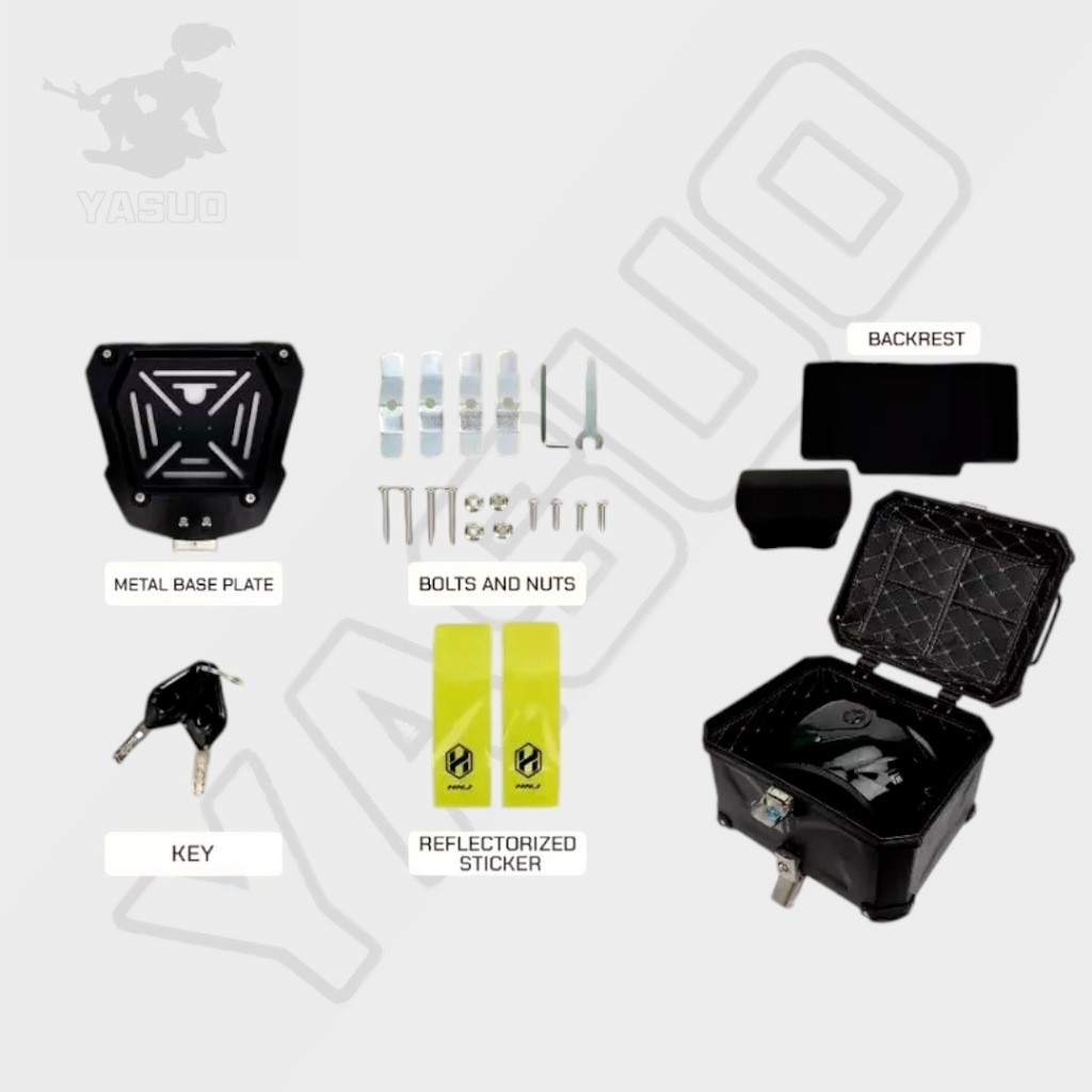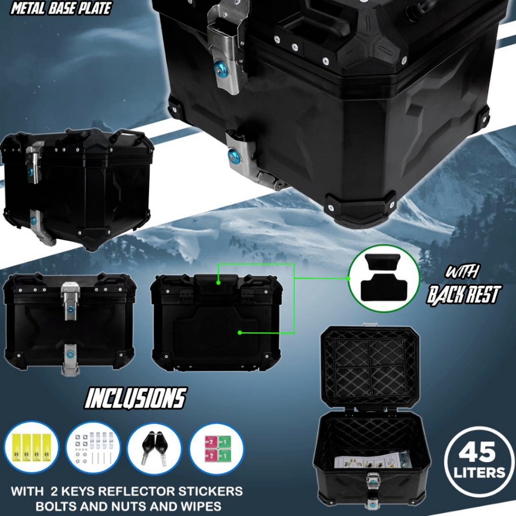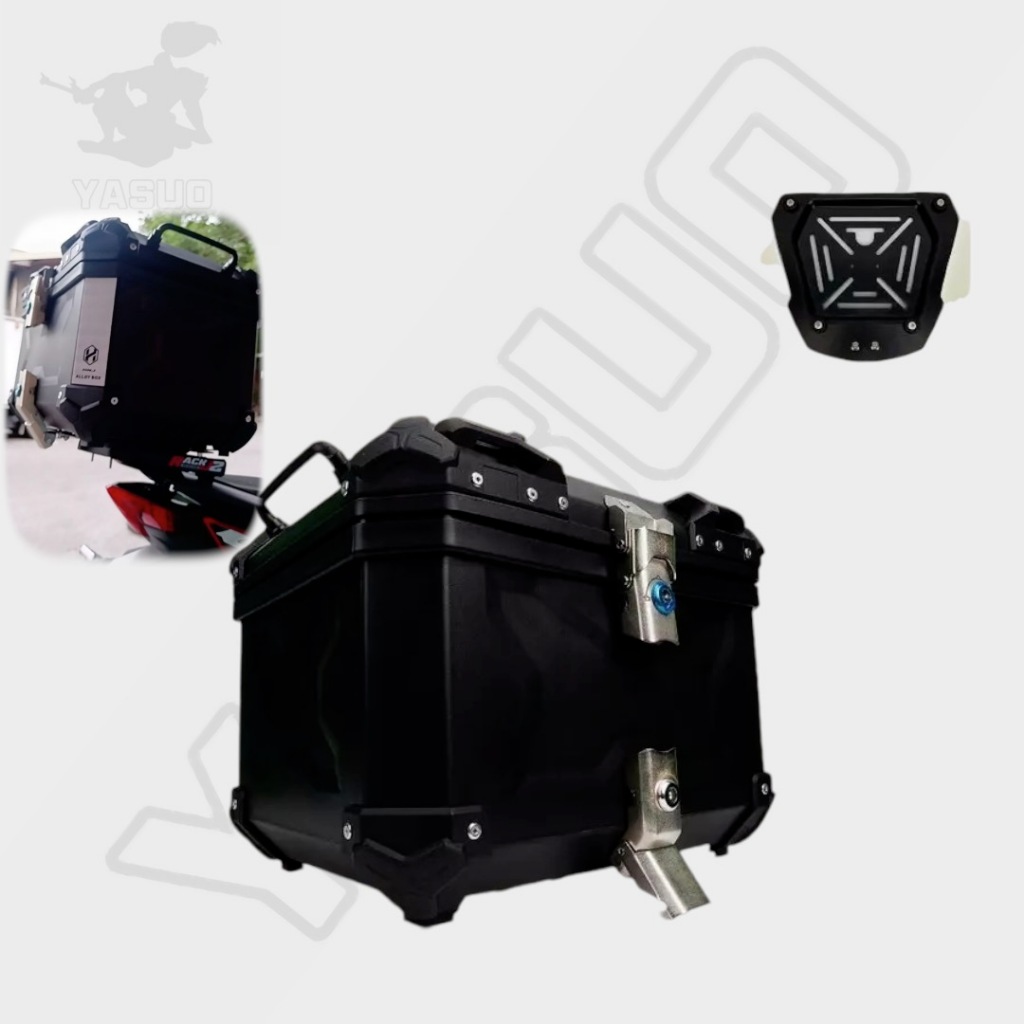 HNJ Top-01 Box For Motorcycle 45 Liters Dual Lock Box With Back Rest Metal Base Plate Helmet Box