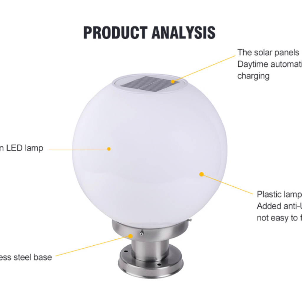 HOB 20CM 25CM Round LED Solar Post Light Waterproof Outdoor Powered Lamp solar garden lights