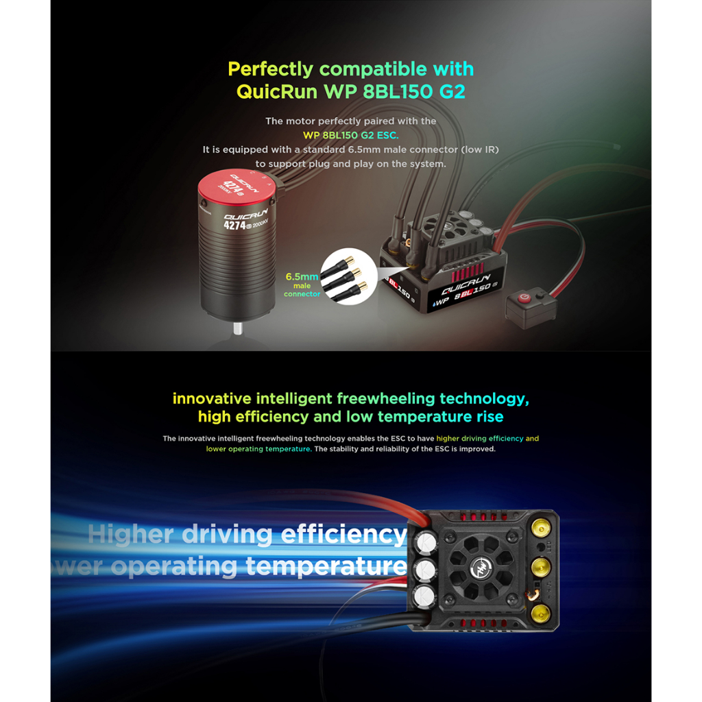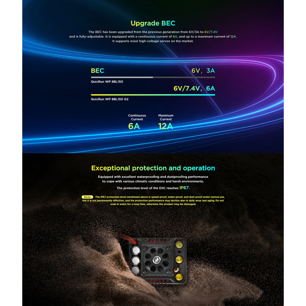 HOBBYWING QuicRun 150A G2 3-6S Waterproof Brushless ESC Motors for 1/8 RC Car