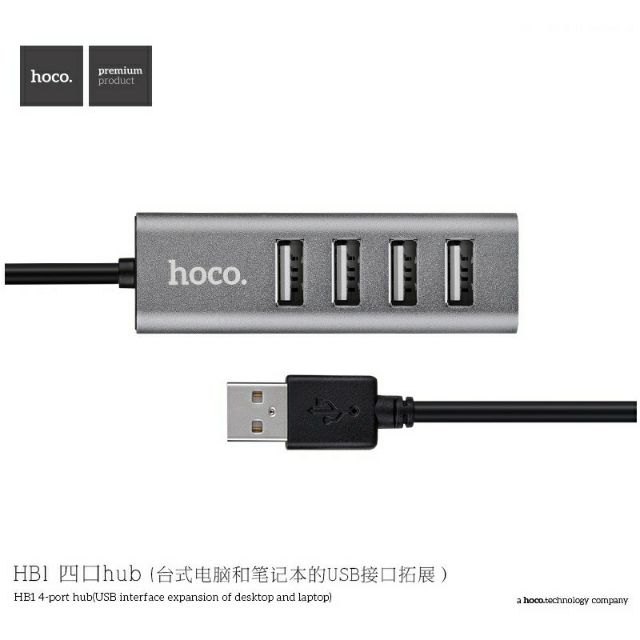 HOCO HB1 4-Port USB HUB Adds A Socket