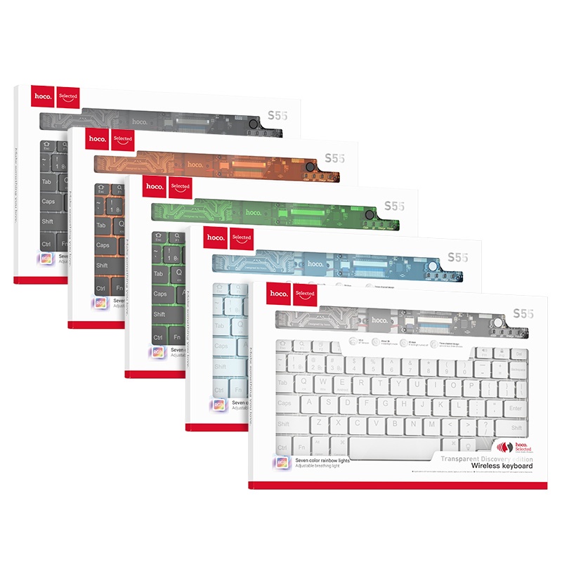 HOCO S55 Transparent Explorer Wireless Bluetooth Keyboard Gaming Keyboard 108 Keys With RGB LED Backlit Ergonomic Gaming Keyboard Portable for Travel