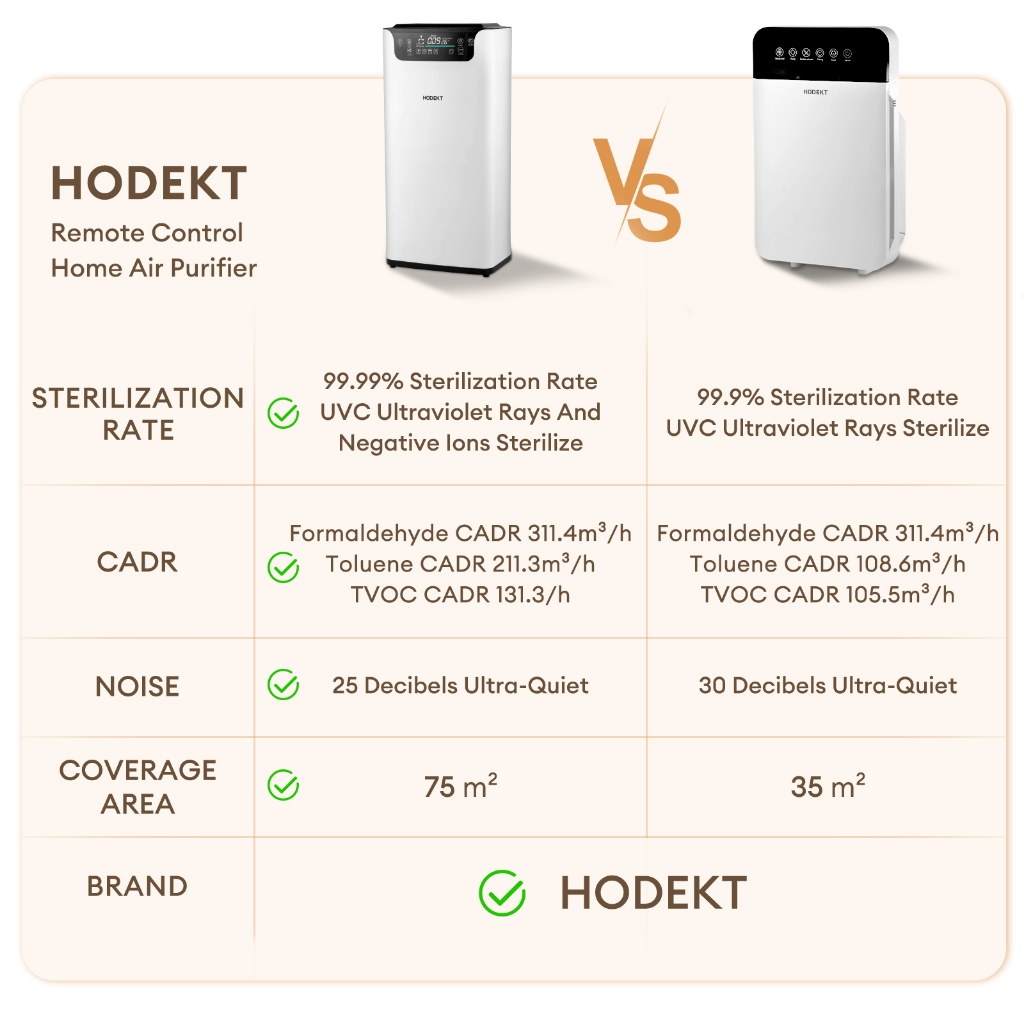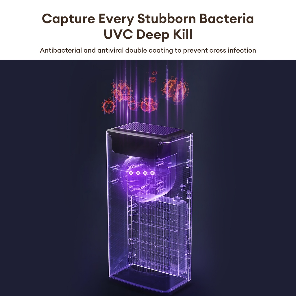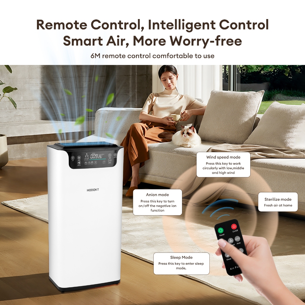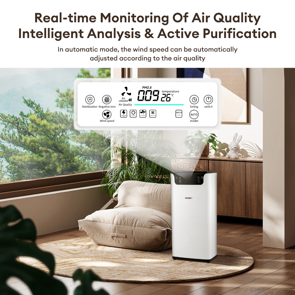 HODEKT Smart Air Purifier UVC Sterilization With Filter 3-Stage Filtration Remove PM2.5 Formaldehyde