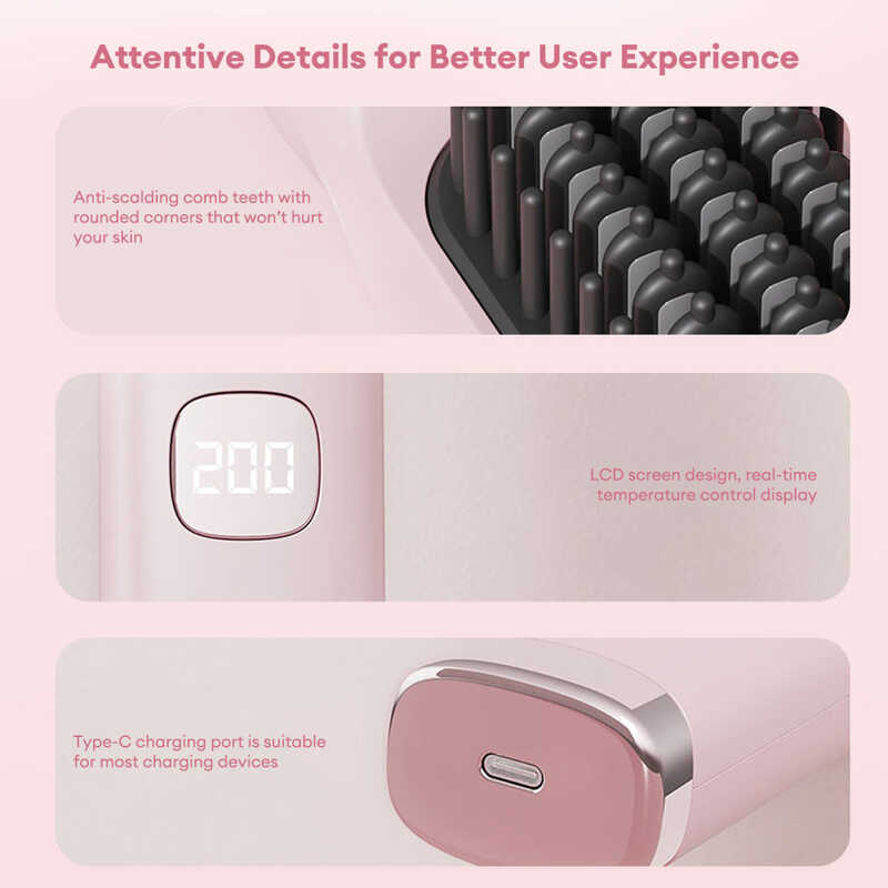 HODEKT Wireless Hair Straightener Comb Portable Electric Cordless Straightening Comb 90C