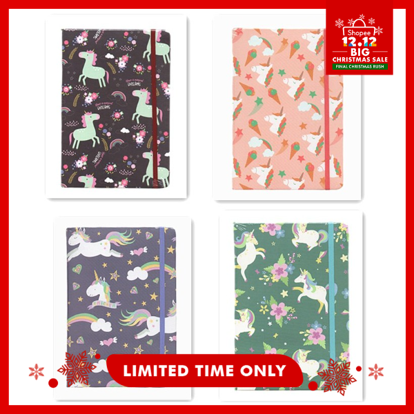 HOKKA Hard Bound Cover A5 Notebook Lined Unicorn with Garter (14.8cm*21cm)