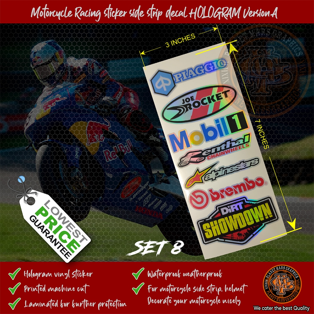 HOLOGRAM MOTORCYCLE SIDE STRIP FAIRINGS RACING STICKER SET 6PCS PER SET waterproof laminated