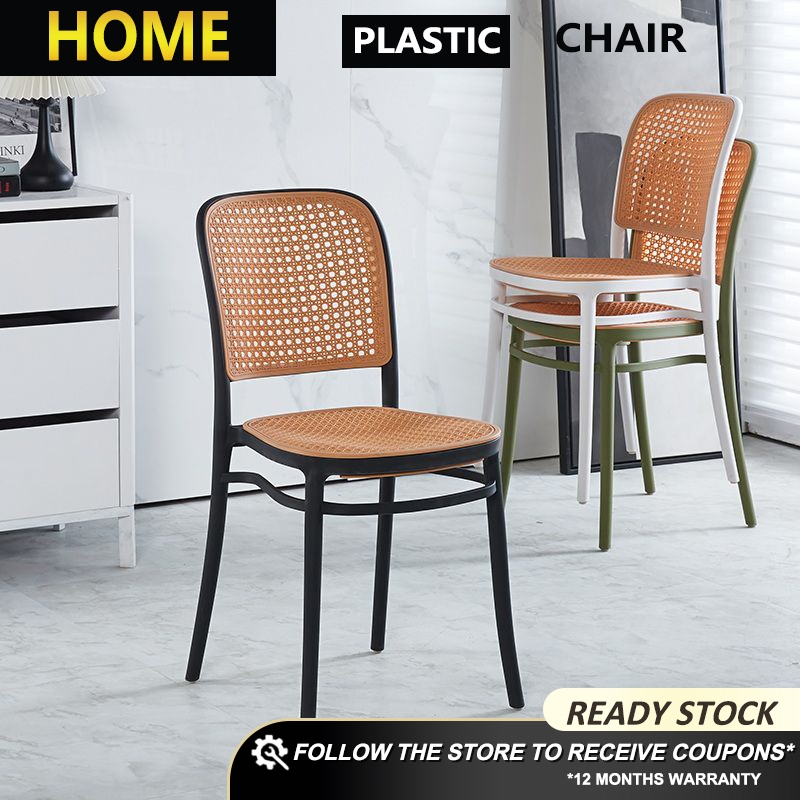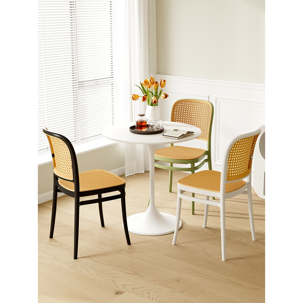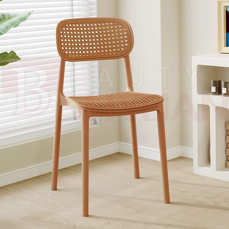 HOME FACTOR Nordic plastic dining chair foldable back chair outdoor rattan chair leisure chair