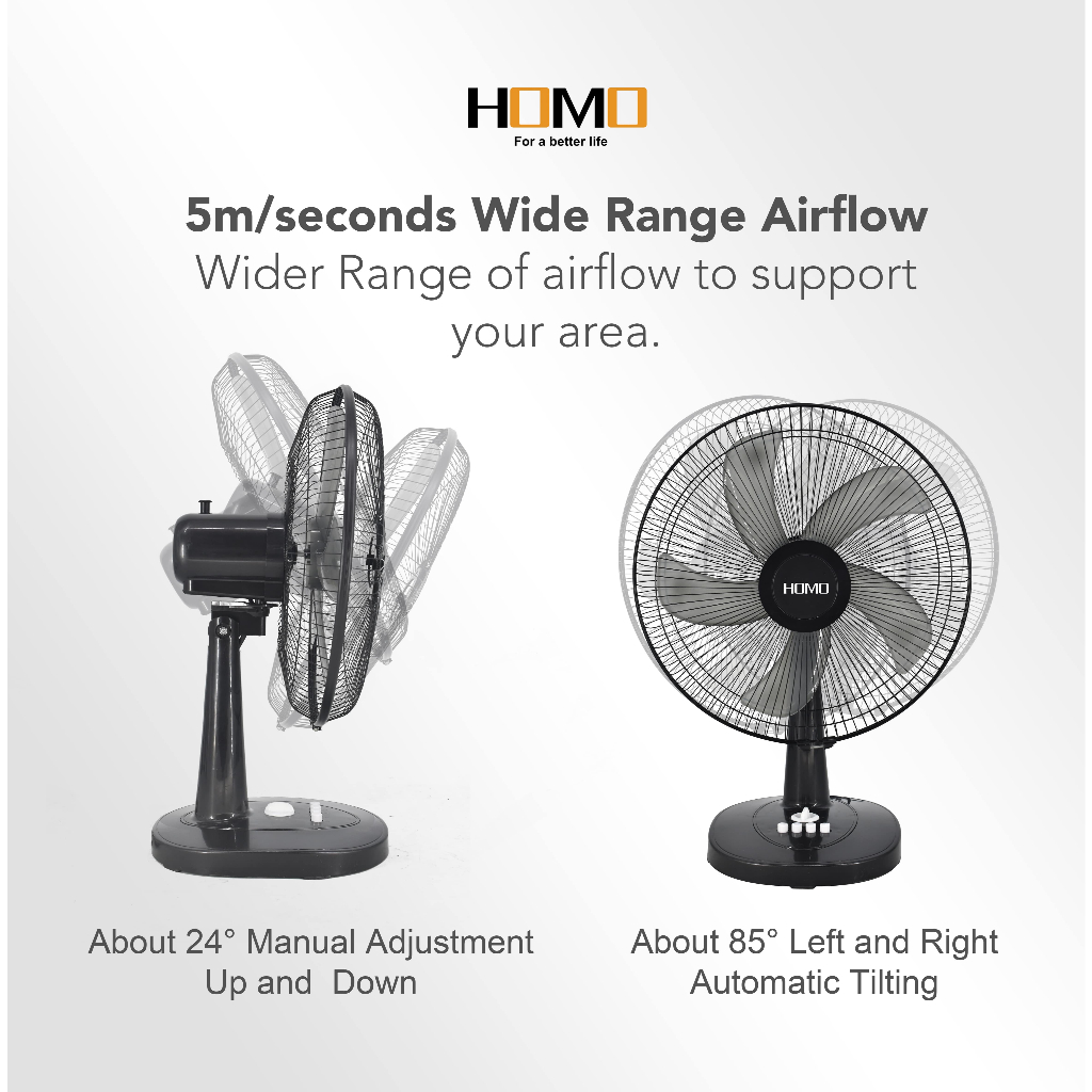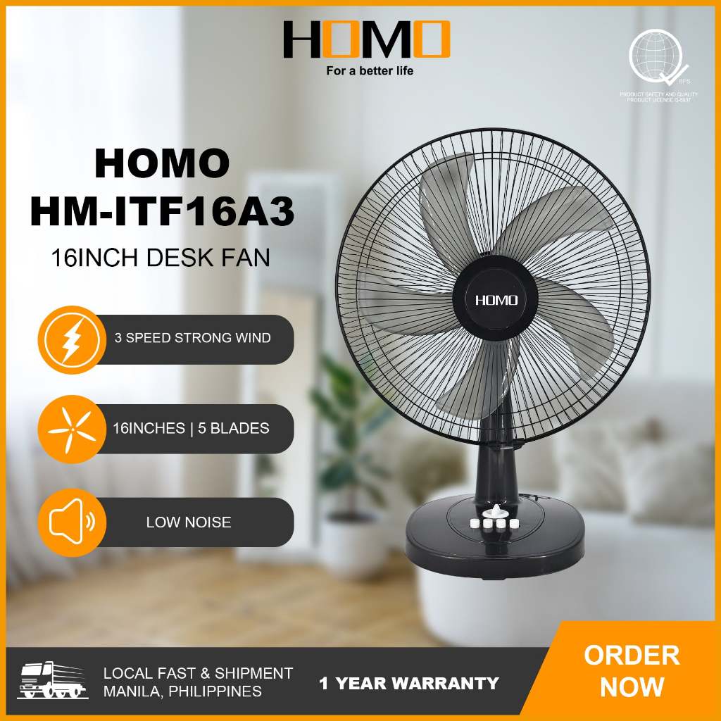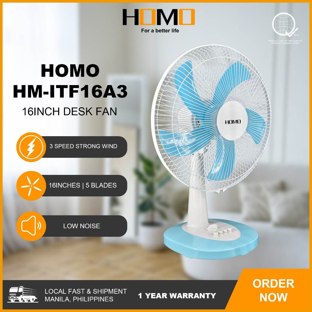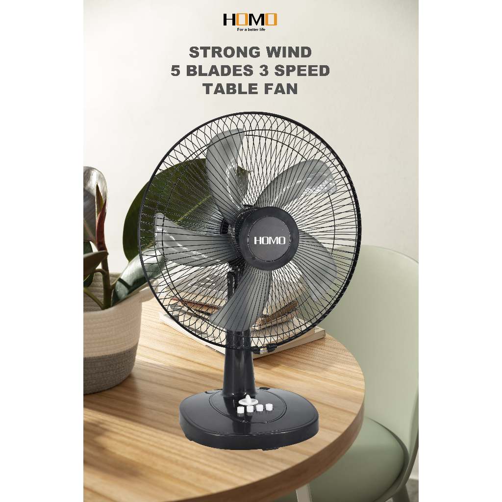 HOMO TABLE FAN (16 inches ) | HM-ITF16A3 Model | 40W Output Power | 3 speeds | 3 Blades