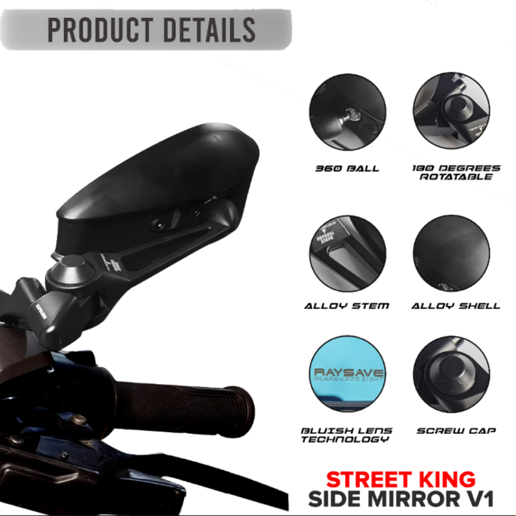 HONDA CLICK 125 STREET KING SIDE MIRROR CLEAR LENS NON GRADED LENS ADJUSTABLE REAR VIEW MIRROR