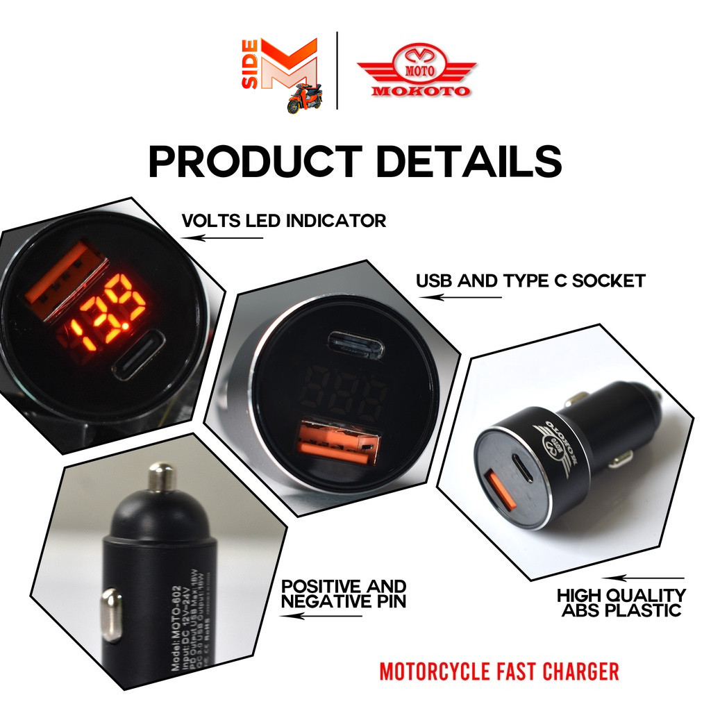 HONDA CLICK 160 Fast Charger 36 Wats Motor/Car/Ebikes Charger USB Type C Fast Charger Mokoto