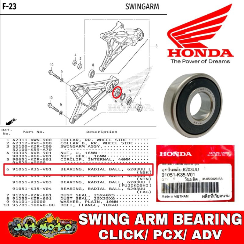 HONDA SWING ARM BEARING (CLICK/ PCX/ ADV) 91051-K35-V01