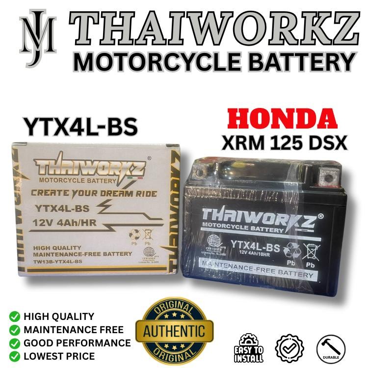 HONDA XRM 125 DSX THAIWORKZ MOTORCYCLE BATTERY ORIGINAL SIZE YTX4L-BS HIGH-QUALITY MAINTENANCE FREE