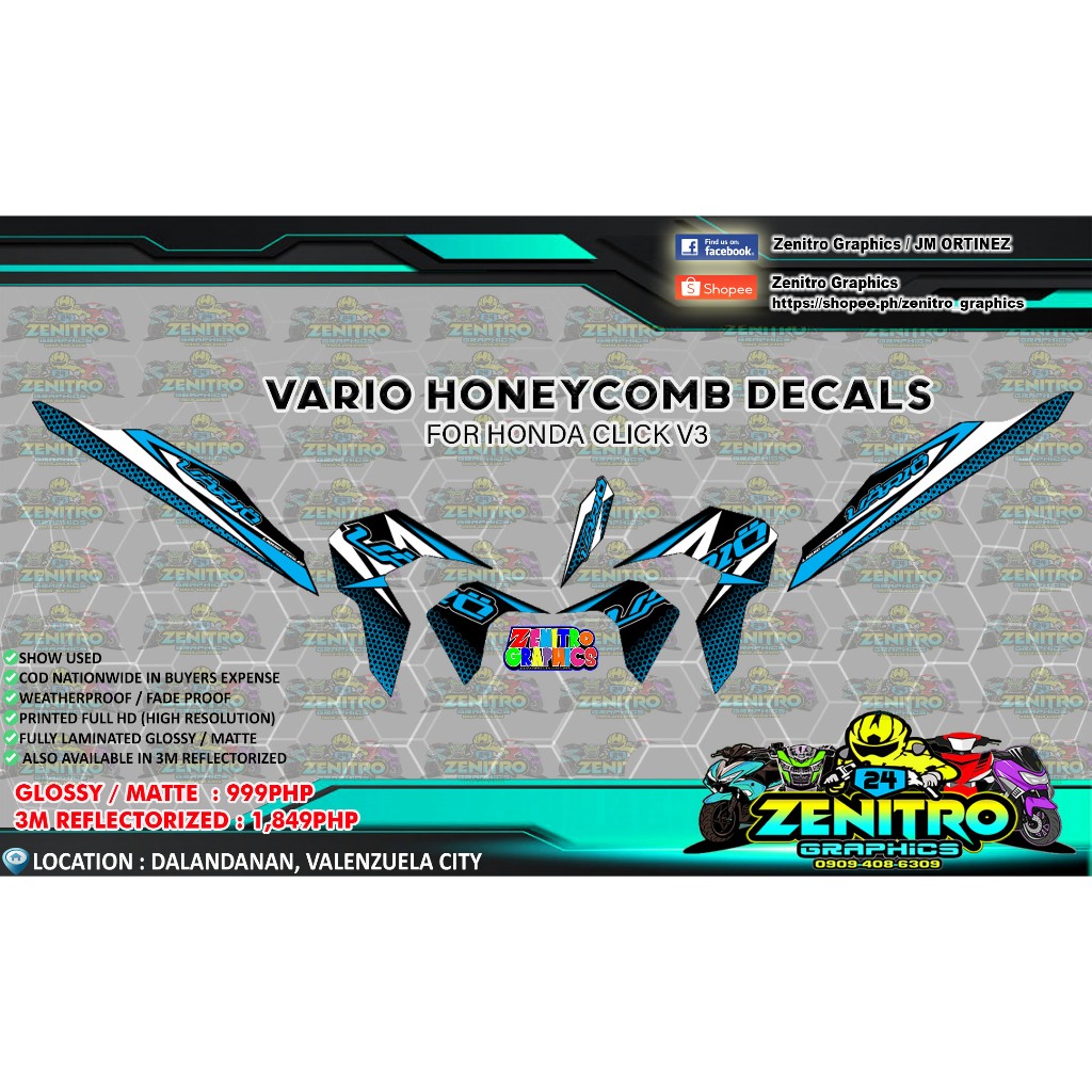 HONEYCOMB DECALS FOR CLICK V3 (ZENITRO GRAPHICS DECALS)