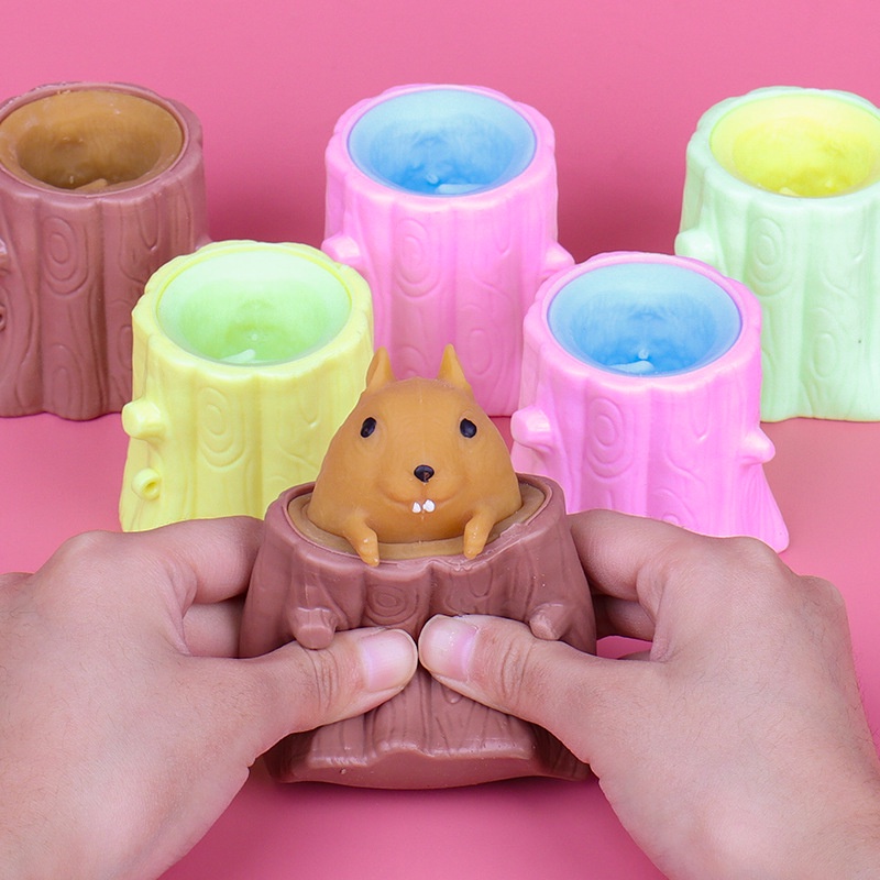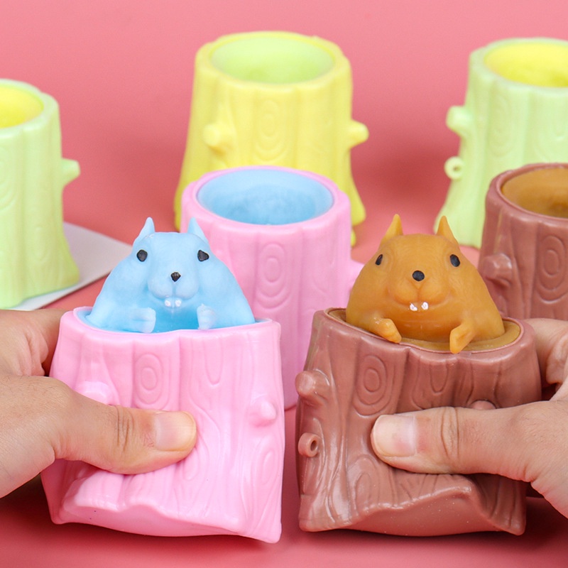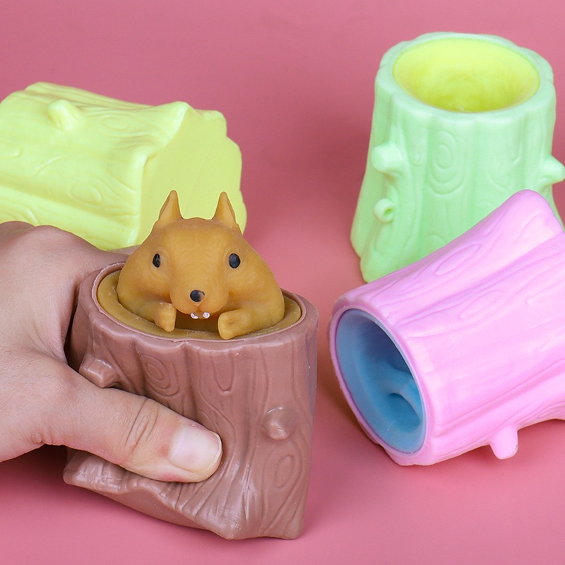 HOT squirrel decompression toy squeeze tree stump rubber toy children's entertainment gift