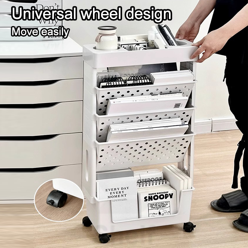 HOTJOY Book shelf organizer with wheels Multi-functional Organizer Magazine Rack Storage Shelf
