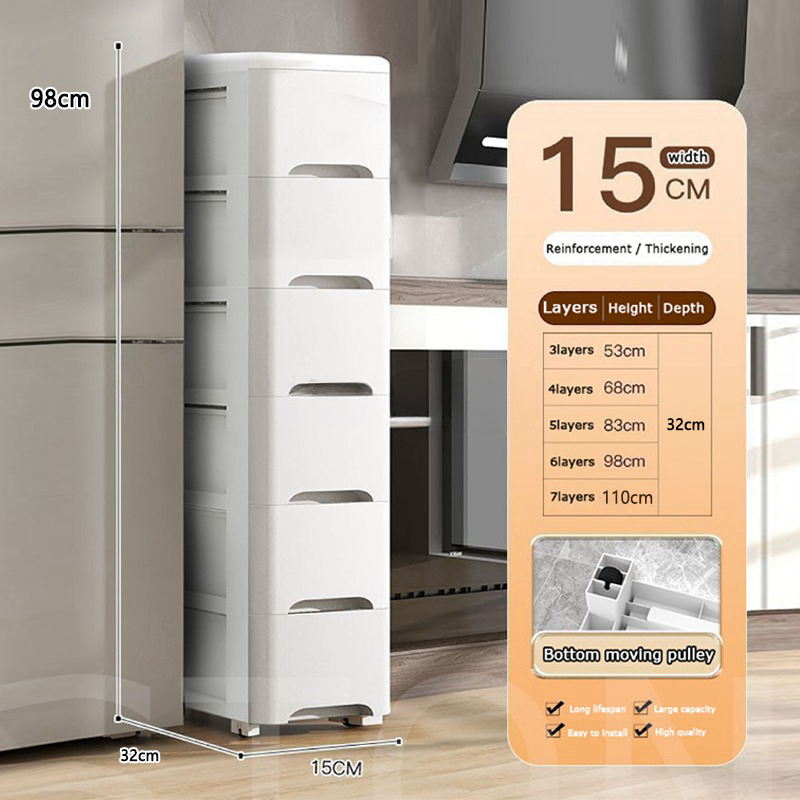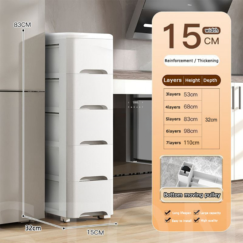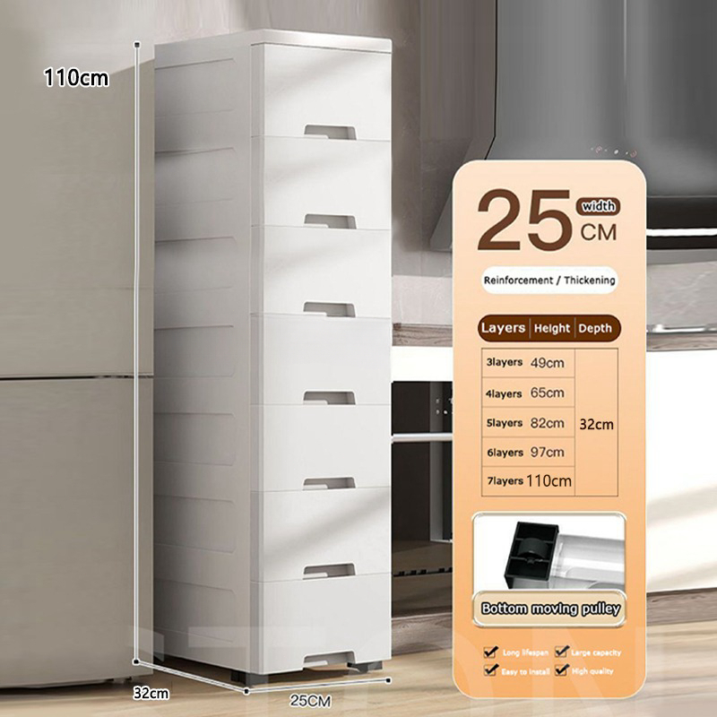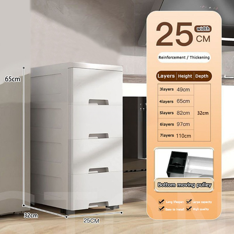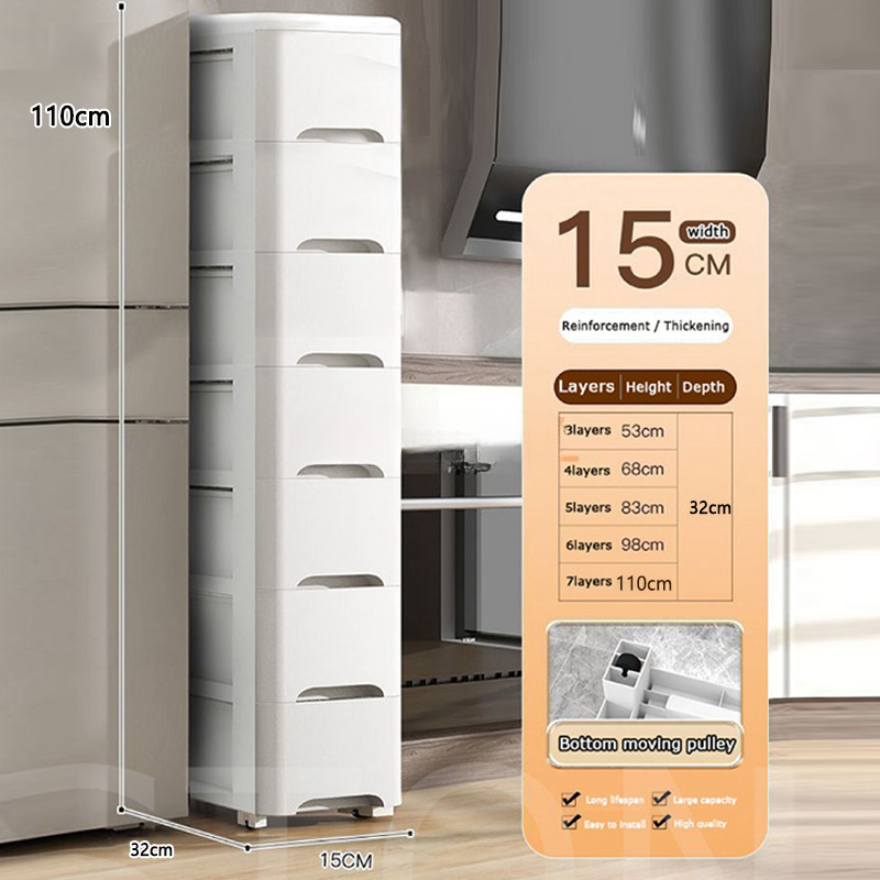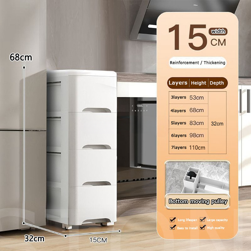 HOTJOY Slim Drawer Organizer Storage Kitchen Cabinet Organizer Plastic Storage Movable Slim Cabinet
