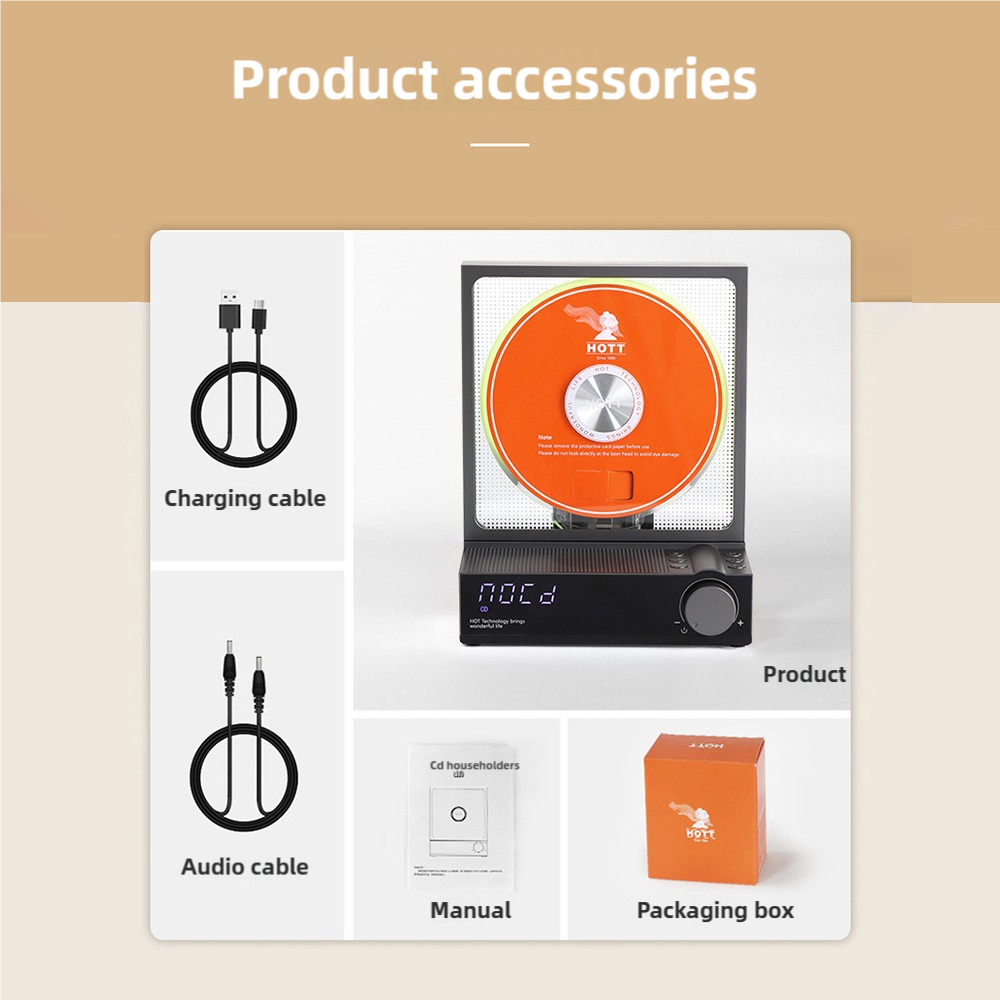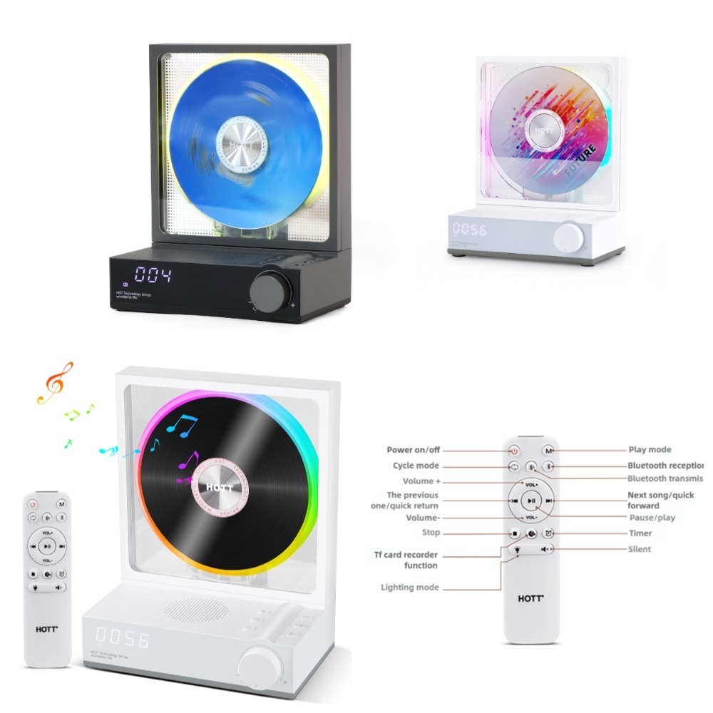 HOTT C229 Retro HIFI CD Player Two-way Bluetooth RGB Dazzling Colour Light Effect Rechargeable Music Player Built-in Speaker TF Card Input