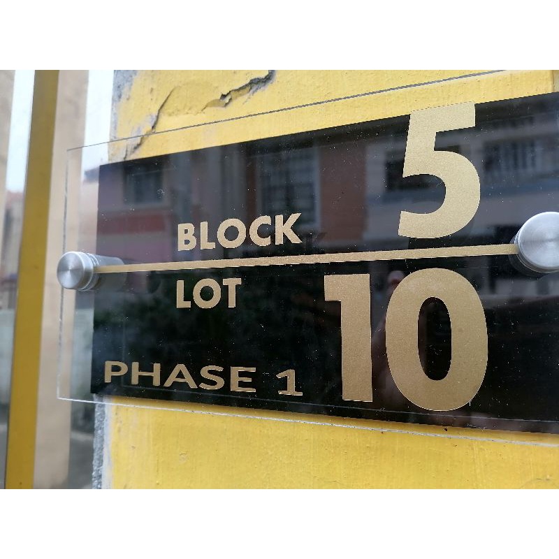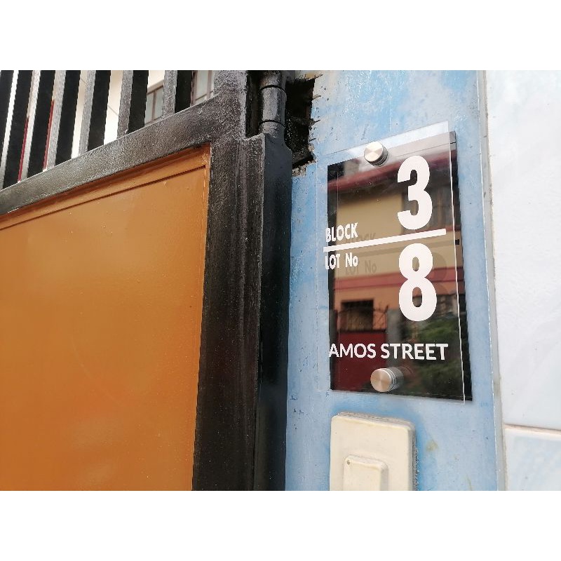 HOUSE NUMBER/BLK AND LOT SIGNAGE 5"X9" DOUBLE ACRYLIC WITH TOX BOLTS SCREW/WATERPROOF .