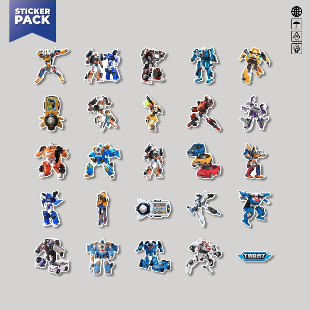 HP [100PCS] Sticker Pack Cartoon Stickers Tobot Aesthetic Vinyl Waterproof Decoration Sticker Laptop Book Journal Suitcase Helmet Casing Guitar Helmet Skateboardhp