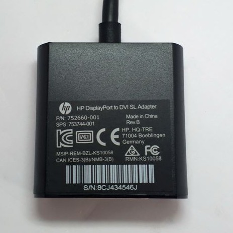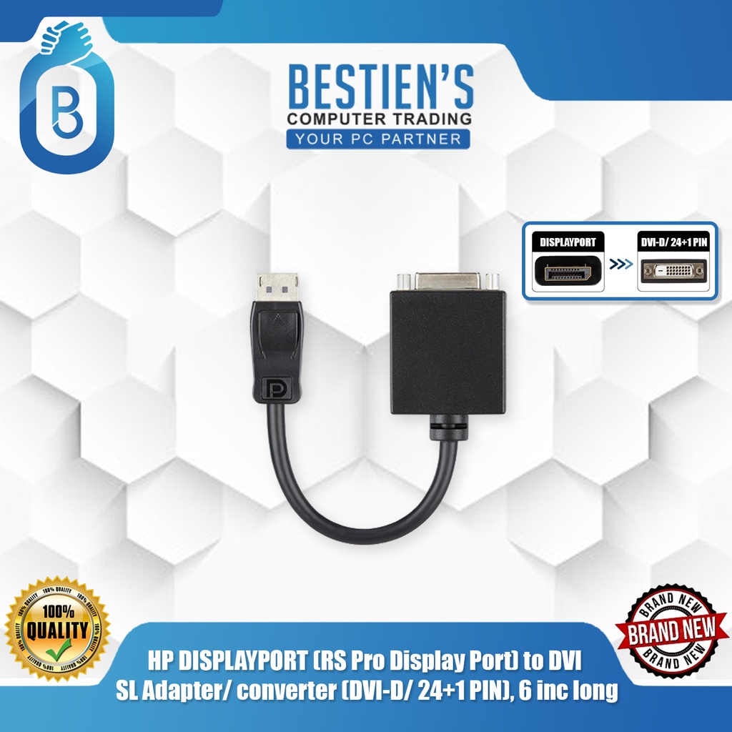 HP DISPLAYPORT to DVI SL Adapter/ converter (DVI-D/ 24+1 PIN), 6 inc long